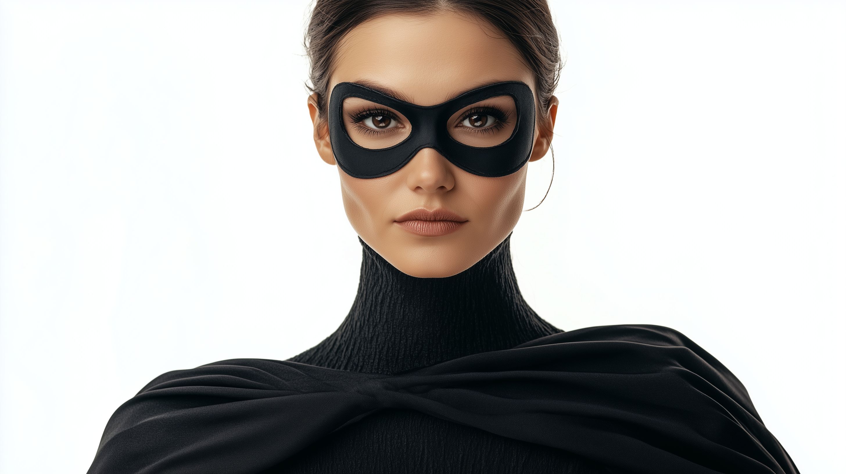 Dieses eindrucksvolle Stockfoto zeigt eine selbstbewusste und mysteriöse Frau, die in einem schwarzen Superheldinnen-Outfit und einer markanten schwarzen Maske gekleidet ist. Ihr ernsthafter Blick und die konzentrierte Haltung verleihen ihr eine geheimnisvolle Ausstrahlung. Das Foto eignet sich hervorragend für den Einsatz in Blogs, Newslettern, Social-Media-Kanälen oder Werbematerialien, die ein dramatisches, kraftvolles oder geheimnisvolles Styling erfordern. Das hochauflösende Bild steht unter einer Creative-Commons-Lizenz kostenlos zum Download zur Verfügung.