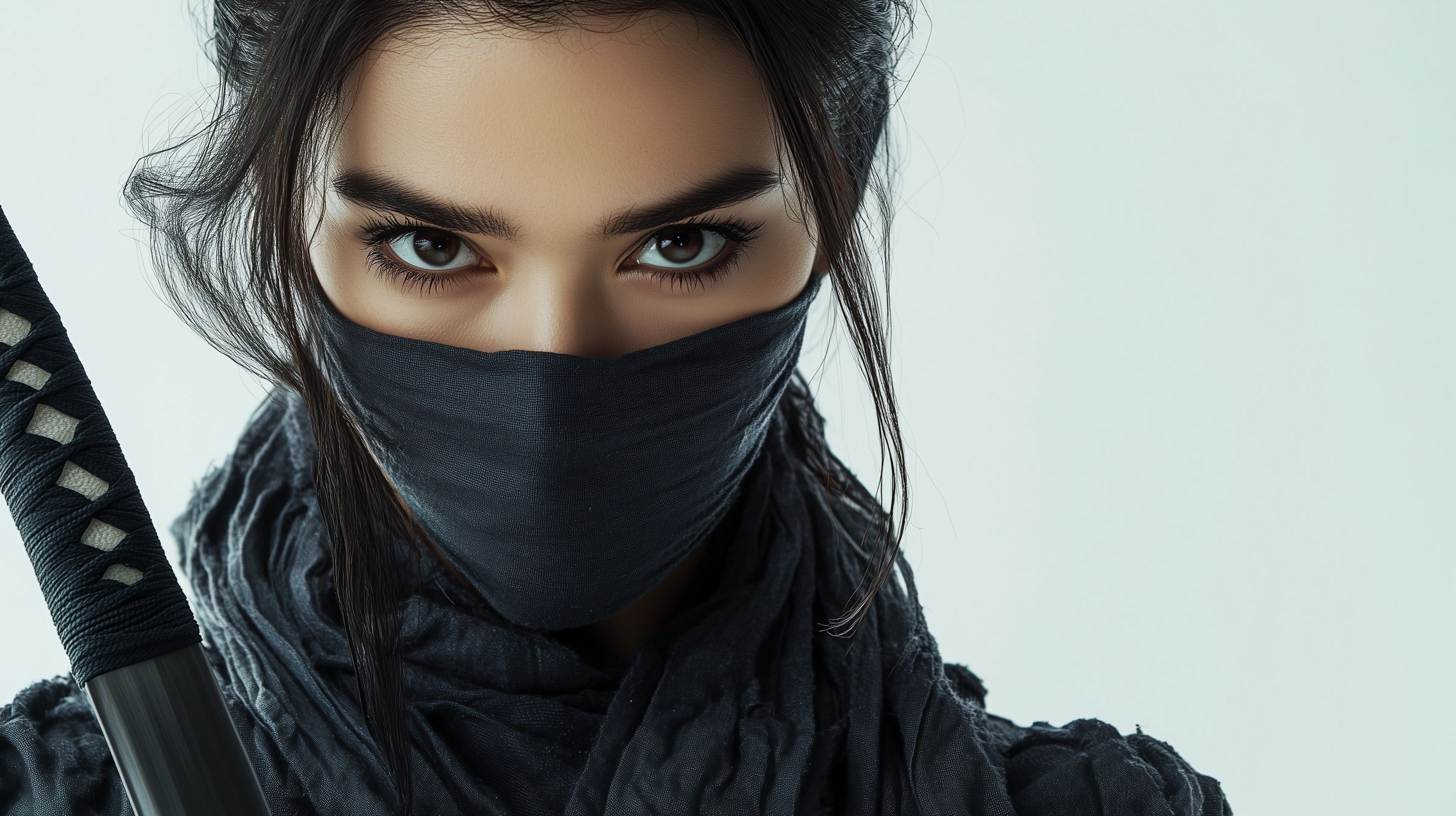 Dieses geheimnisvolle Stockfoto zeigt eine Frau in Ninja-Outfit, die ihr Gesicht mit einer schwarzen Maske verdeckt. Ihre konzentrierten Augen blicken ernst und wachsam in die Kamera. Sie hält ein Katana-Schwert in der Hand, bereit für den Kampf. Das Bild strahlt Spannung, Geheimnis und Action aus und eignet sich hervorragend für Thriller, Action oder düstere Grunge-Designs. Mit seiner hohen Auflösung und kostenlosen Creative-Commons-Lizenz ist es ein vielseitig einsetzbares Stockfoto für Blog-Beiträge, Werbemittel oder Social-Media-Posts.