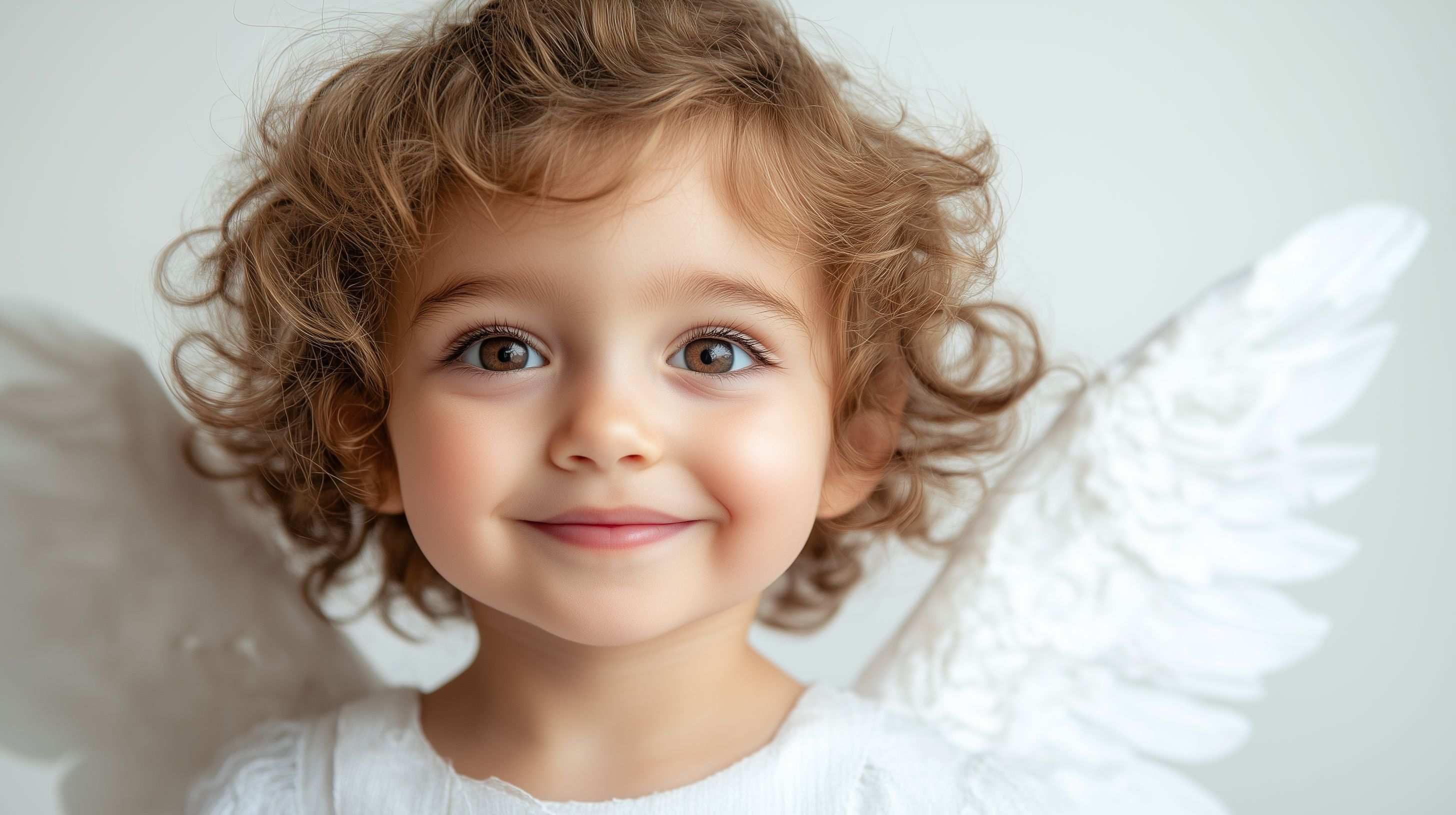 Das Bild zeigt ein niedliches, kleines Kind, das ein Engelskostüm mit weißen Flügeln trägt. Das Mädchen hat ein fröhliches Lächeln auf dem Gesicht und lockige, braune Haare. Die Aufnahme ist in einem hellen, freundlichen Ambiente entstanden und verleiht der Szene eine Atmosphäre von Unschuld und Fantasie. Dieses kostenloses Stockfoto in hoher Auflösung eignet sich hervorragend für Verwendung in Blogs, Newslettern, Social-Media-Kanälen oder Werbekampagnen rund um Themen wie Kindermode, Weihnachten oder kindliche Freude.