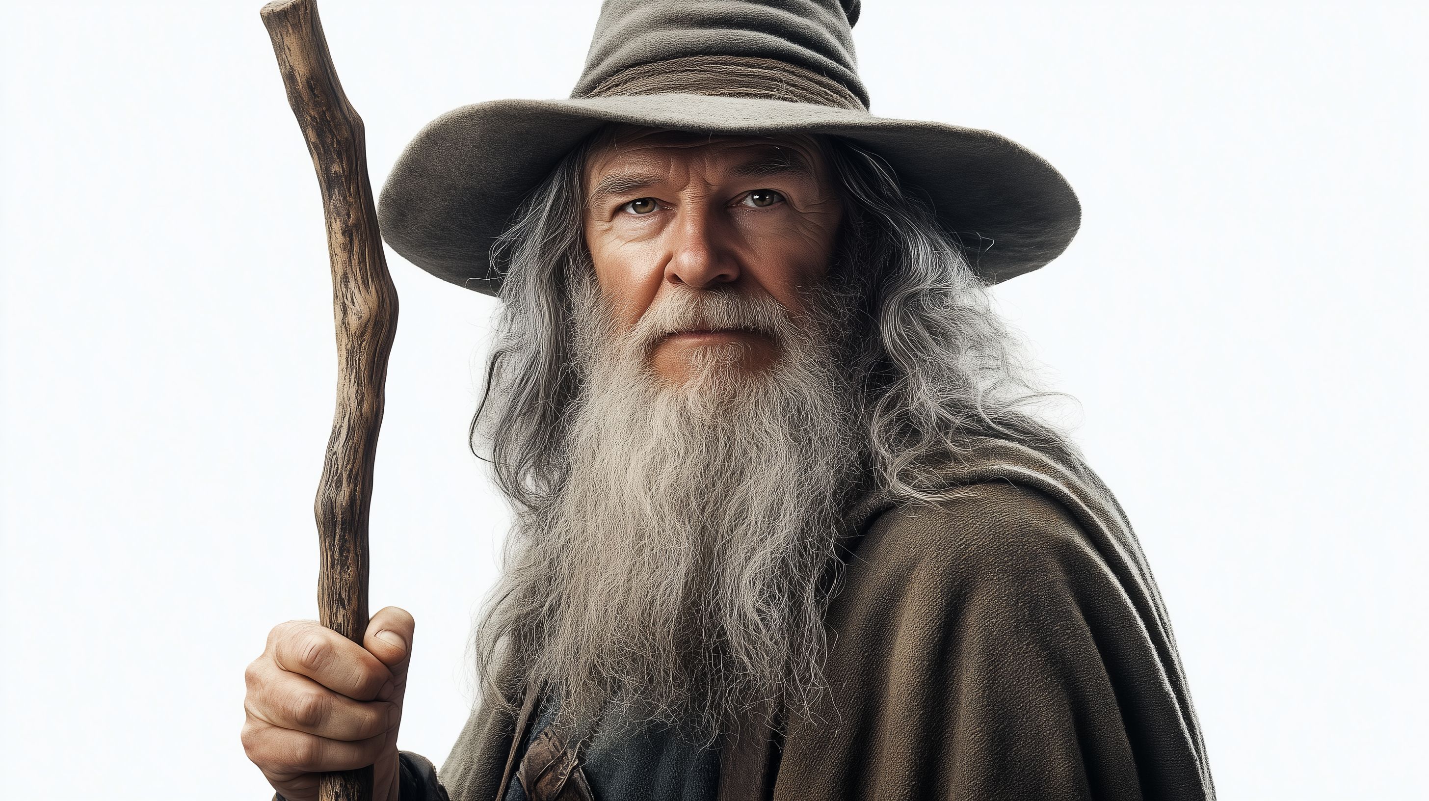 Dieses Foto zeigt einen älteren Mann mit langem, grauem Bart und Haaren, der in einem dunklen Gewand und einem spitzen Hut gekleidet ist und einen altertümlichen Stab in der Hand hält. Er blickt ernst und nachdenklich in die Kamera, was den mystischen und fantastischen Eindruck des Motivs verstärkt. Das Bild eignet sich hervorragend für Anwendungen im Bereich Fantasy, Märchen, Rollenspiele oder Kreativität, da es eine sehr stimmungsvolle und atmosphärische Szene darstellt. Das hochwertige Stockfoto ist in hoher Auflösung und unter einer Creative-Commons-Lizenz frei nutzbar.