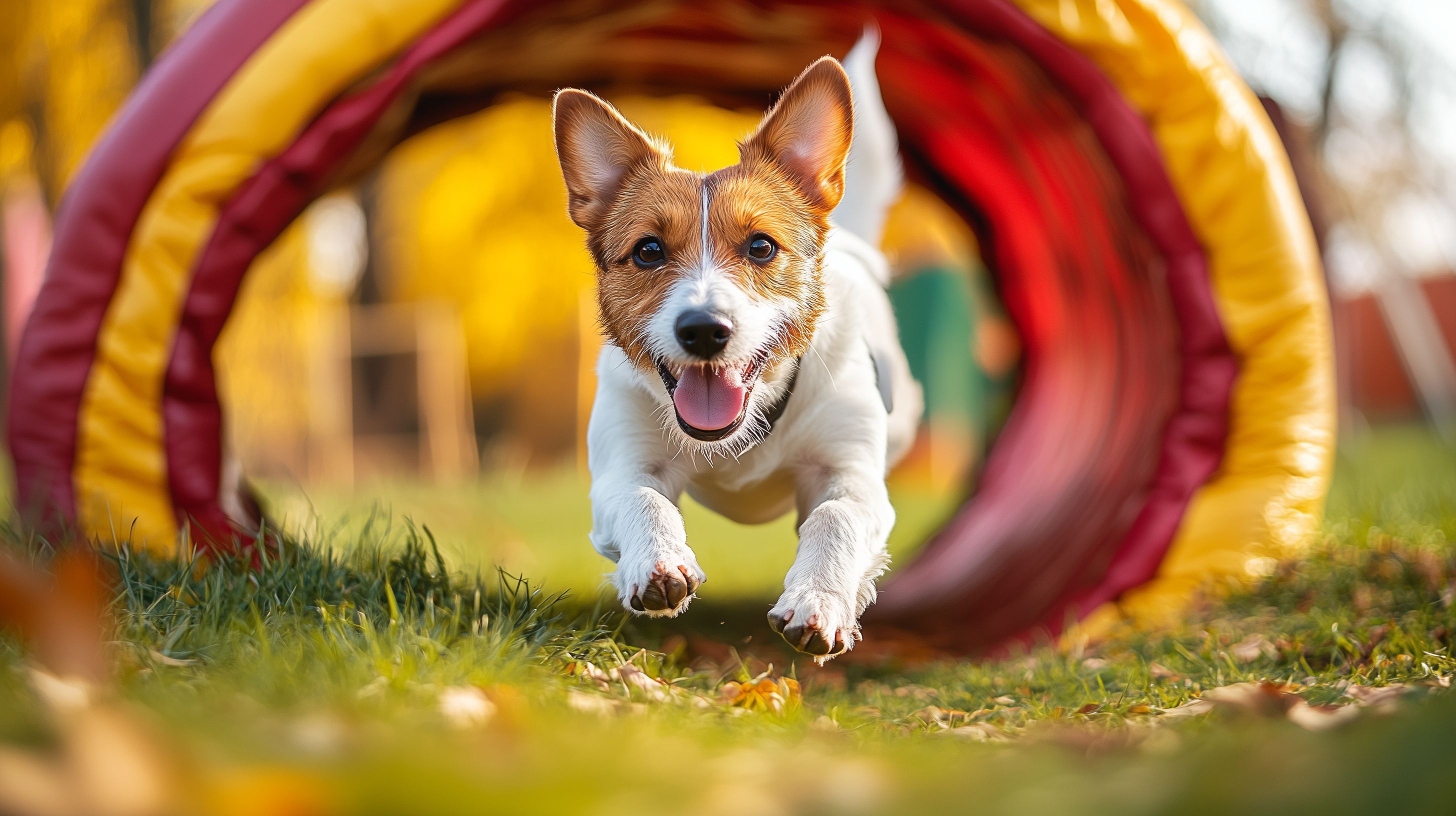 Dieses lebhafte Foto zeigt einen fröhlichen Hund, der durch einen bunten Agility-Parcours in einer herbstlichen Parklandschaft läuft. Der kleine Vierbeiner scheint voller Energie und Begeisterung zu sein, während er den Hindernissen geschickt ausweicht. Die Szene strahlt eine positive, dynamische Stimmung aus und eignet sich perfekt für den Einsatz in Blogs, Newslettern, Social-Media-Beiträgen oder Werbematerialien. Als kostenloses Hochqualitäts-Stockfoto unter Creative-Commons-Lizenz lässt es sich vielseitig und ohne rechtliche Einschränkungen nutzen.