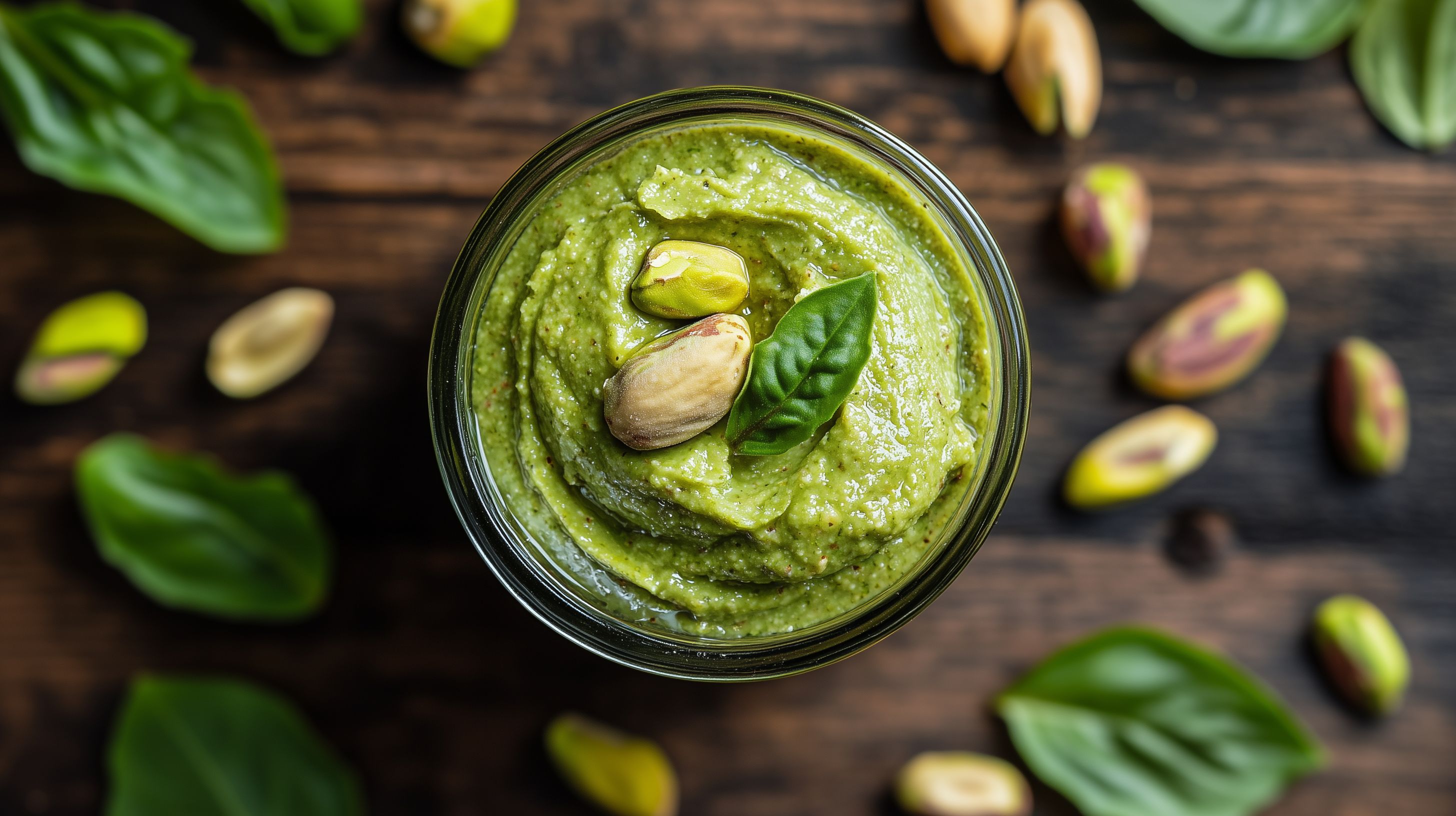Dieses Foto zeigt eine Glasschale, die mit einer grünen, cremigen Pistazienbutter gefüllt ist. Umgeben ist der Behälter von frischen, ungeschälten Pistazien, die sich in unterschiedlichen Positionen auf dem dunklen Holzuntergrund befinden. Die Komposition ist natürlich und rustikal, wodurch das gesunde, vegetarische Lebensmittel perfekt in Szene gesetzt wird. Dieses hochwertige Stockfoto in hoher Auflösung eignet sich hervorragend für den Einsatz in Blogbeiträgen, Newslettern, Social-Media-Kanälen oder Werbekampagnen rund um das Thema Gesundheit, Kochen und Ernährung. Die Pistazienbutter sticht durch ihre intensive Farbe und den appetitlichen Auftritt ins Auge. Dieses Foto steht unter einer Creative-Commons-Lizenz zur kostenfreien Verwendung zur Verfügung.