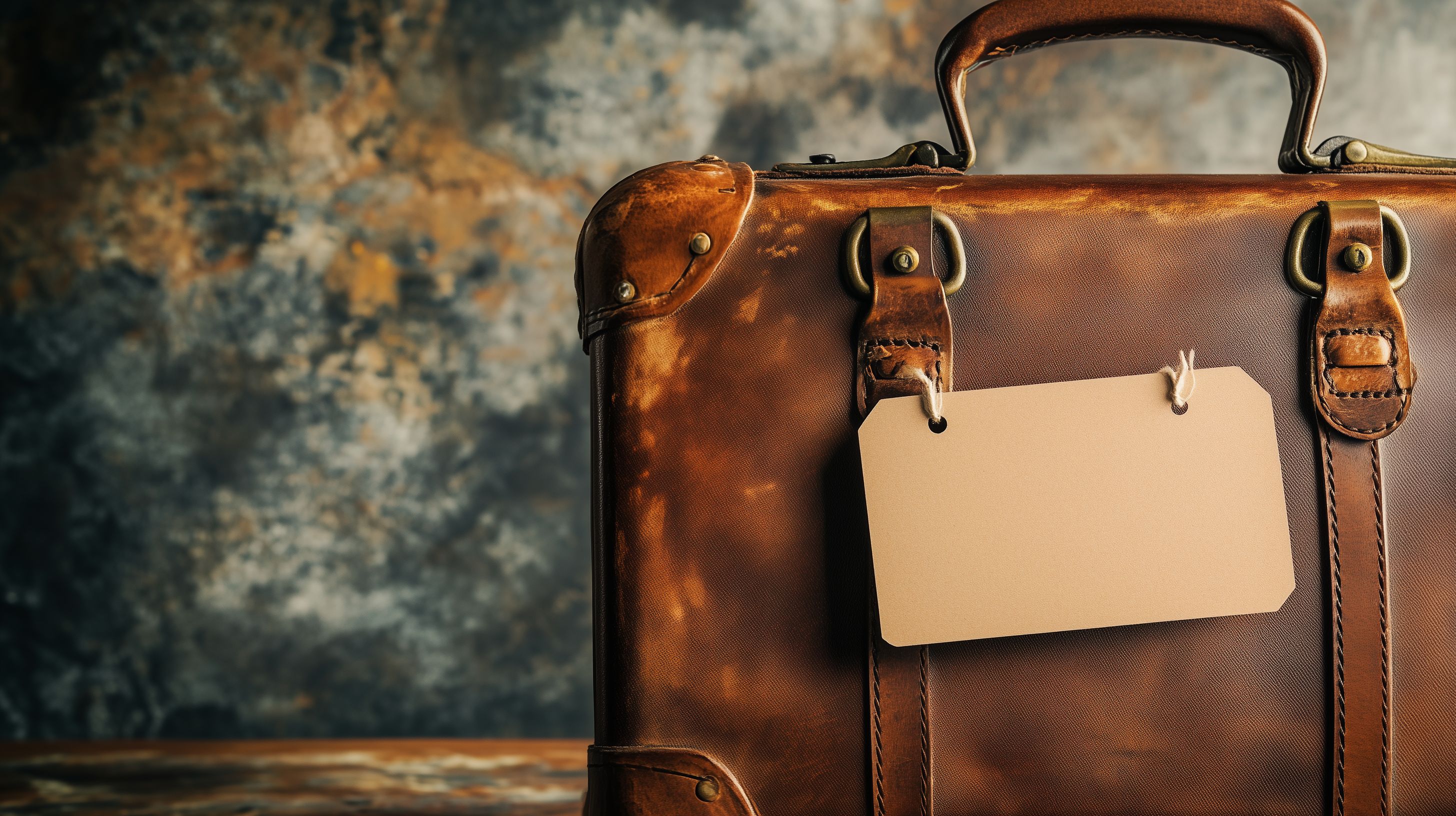 Das Bild zeigt einen alten, authentisch aussehenden Lederkoffer vor einem rustikalen Holzhintergrund. Der Koffer hat eine abgenutzte, vintage-artige Optik mit einer braunen, ledernen Oberfläche. Er ist mit mehreren Schnallen und Griffen versehen und trägt ein leeres, weißes Namensetikett. Der Fokus liegt auf dem detailreichen Kofferstück, das einen nostalgischen, reiseinspirierenden Charakter ausstrahlt. Dieses hochwertige Stockfoto eignet sich perfekt für Blogs, Newsletter, Social-Media-Posts oder Werbematerialien rund um Reisen, Vintage-Lifestyle, Fotografie und Dekorationen. Die großzügige Auflösung und Creative-Commons-Lizenz erlauben eine vielseitige Verwendung ohne Einschränkungen.