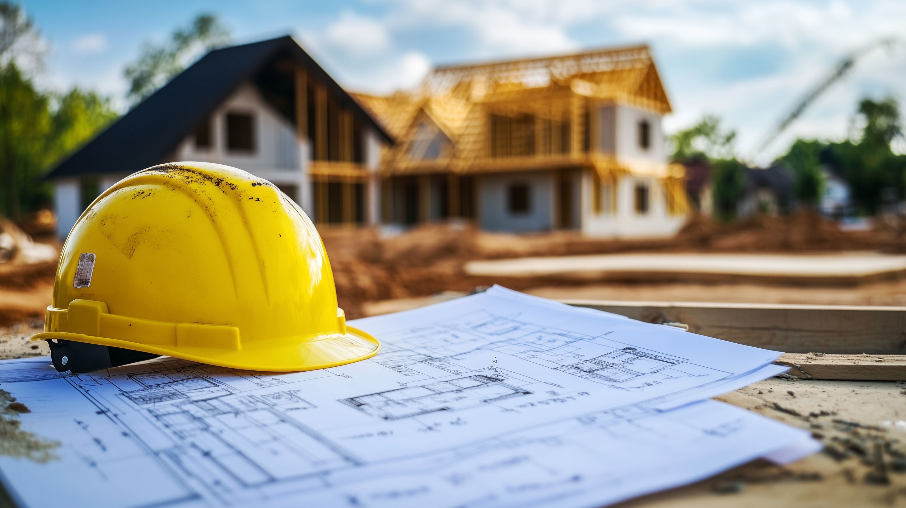 Das Foto zeigt einen Bauhelm, der auf Bauplänen für ein teilweise fertig gestelltes Gebäude liegt. Im Hintergrund ist der Rohbau eines mehrstöckigen Hauses zu sehen, das sich in der Bauphase befindet. Die Szene vermittelt den Eindruck einer Baustelle, an der die Planung und Konstruktion eines neuen Gebäudes voranschreitet. Das Bild eignet sich hervorragend für den Einsatz in Artikeln, Blogbeiträgen oder Social-Media-Kampagnen zu Themen wie Architektur, Immobilien, Bauindustrie oder Projektmanagement. Als hochwertiges, kostenloses Stockfoto in Creative-Commons-Lizenz ist es vielseitig einsetzbar.