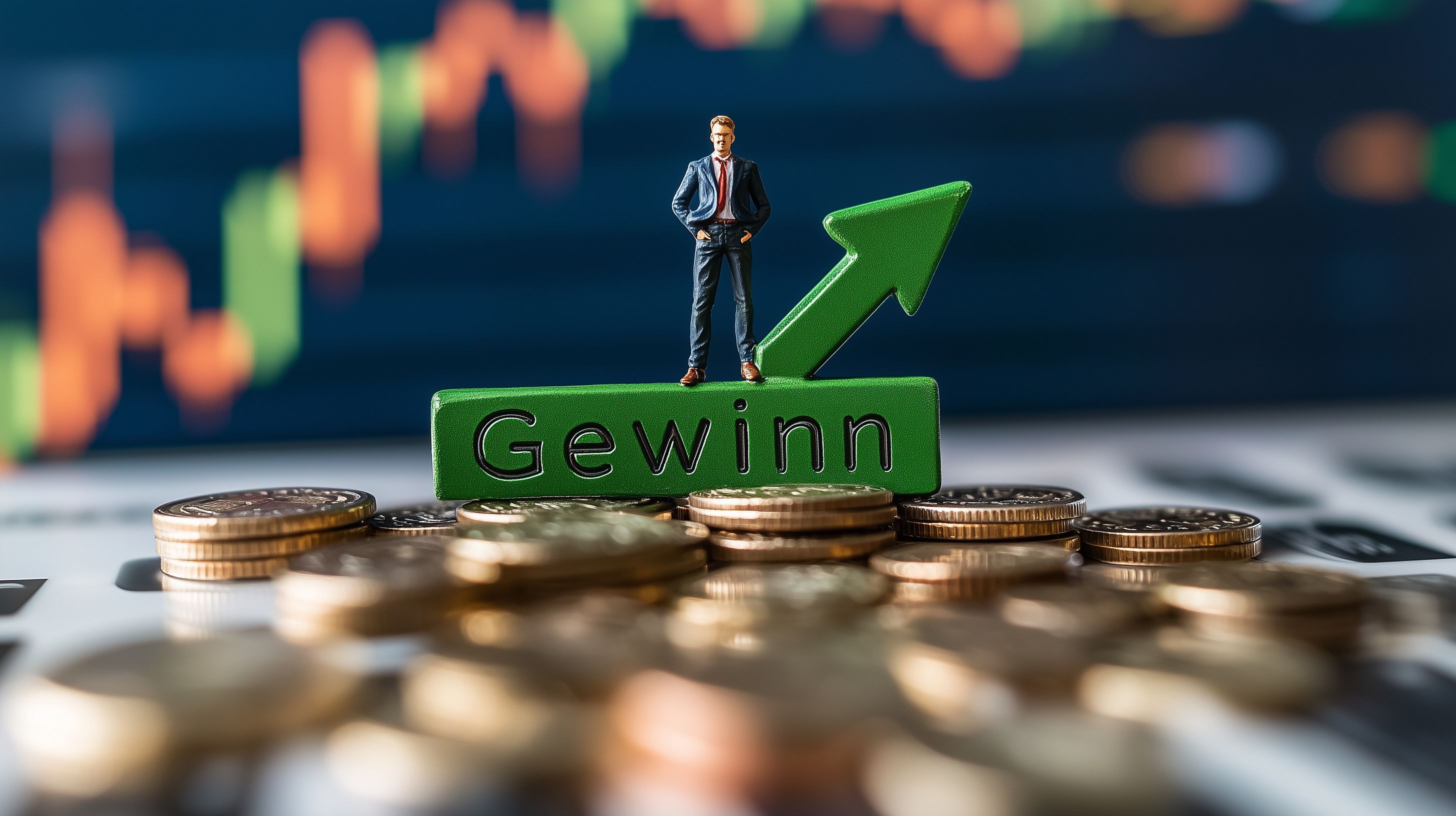Das Bild zeigt einen Geschäftsmann, der stolz auf einem grünen Pfeil steht, der auf den Schriftzug 'Gewinn' weist. Vor ihm liegen mehrere Stapel von Münzen, die den finanziellen Erfolg und das Wachstum des Unternehmens symbolisieren. Die Komposition und Farbgebung vermitteln ein Gefühl von Optimismus und Zuversicht. Dieses Stockfoto eignet sich hervorragend für Beiträge in Wirtschaftsmagazinen, Unternehmensberichten oder Präsentationen zu Themen wie Investitionsstrategien, Gewinnoptimierung oder Unternehmensentwicklung. Das hochauflösende Bild unter einer Creative-Commons-Lizenz kann kostenfrei für Online- und Offline-Nutzung verwendet werden.