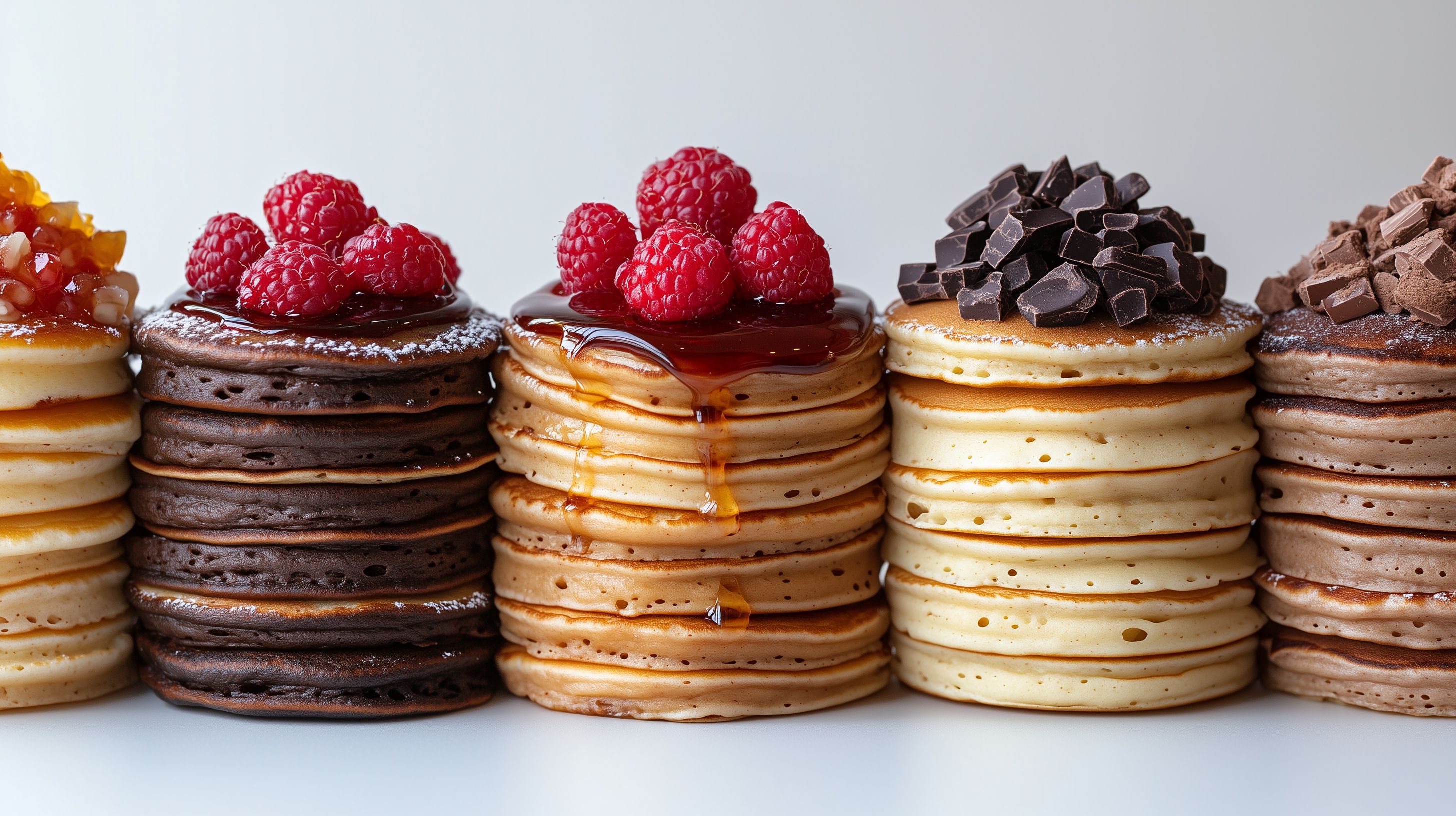 Das Foto zeigt einen Stapel von leckeren Pfannkuchen, die mit verschiedenen Zutaten wie saftige Himbeeren und köstlichem Schokoladentopping garniert sind. Die Pfannkuchen sind in einer attraktiven Anordnung auf einem hellen Hintergrund platziert, was ein appetitanregendes und visuell ansprechendes Bild ergibt. Dieses hochauflösende Stockfoto eignet sich hervorragend für die Verwendung in Blogbeiträgen, Rezeptsammlungen, Kochzeitschriften oder Werbekampagnen rund um das Thema Frühstück, Brunch und Desserts. Es ist unter einer Creative-Commons-Lizenz frei verfügbar und kann in hoher Qualität heruntergeladen werden.