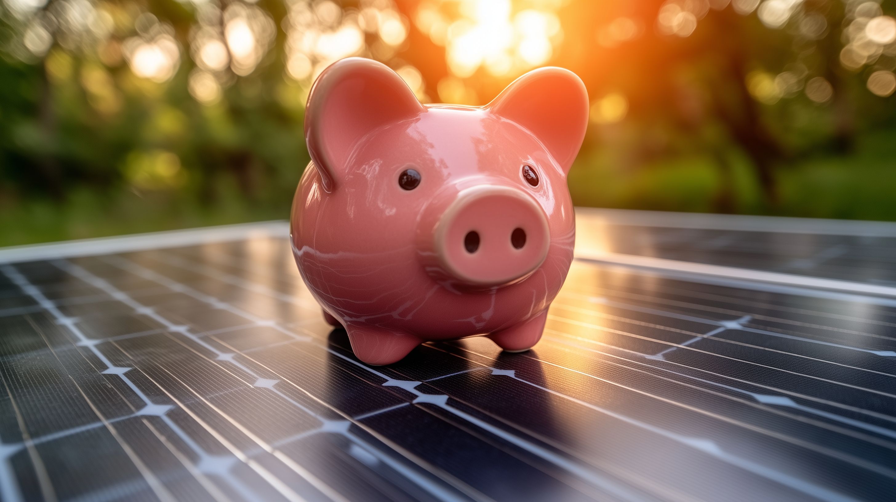 Das Bild zeigt ein pinkfarbenes Sparschwein, das auf einem Solarmodul steht, während im Hintergrund ein warmer Sonnenuntergang zu sehen ist. Das Solarmodul reflektiert das Licht und verleiht der Szene eine natürliche, gemütliche Atmosphäre. Das Sparchwein symbolisiert das Thema der Geldanlage und Ersparnisse, die durch erneuerbare Energien wie Solarstrom unterstützt und gefördert werden können. Dieses Stockfoto eignet sich hervorragend für Verwendungen in Blogbeiträgen, Newslettern oder Social-Media-Kampagnen zu Themen wie Nachhaltigkeit, Finanzen und Energieeffizienz. Es ist in hoher Auflösung verfügbar und unter einer Creative-Commons-Lizenz kostenfrei nutzbar.