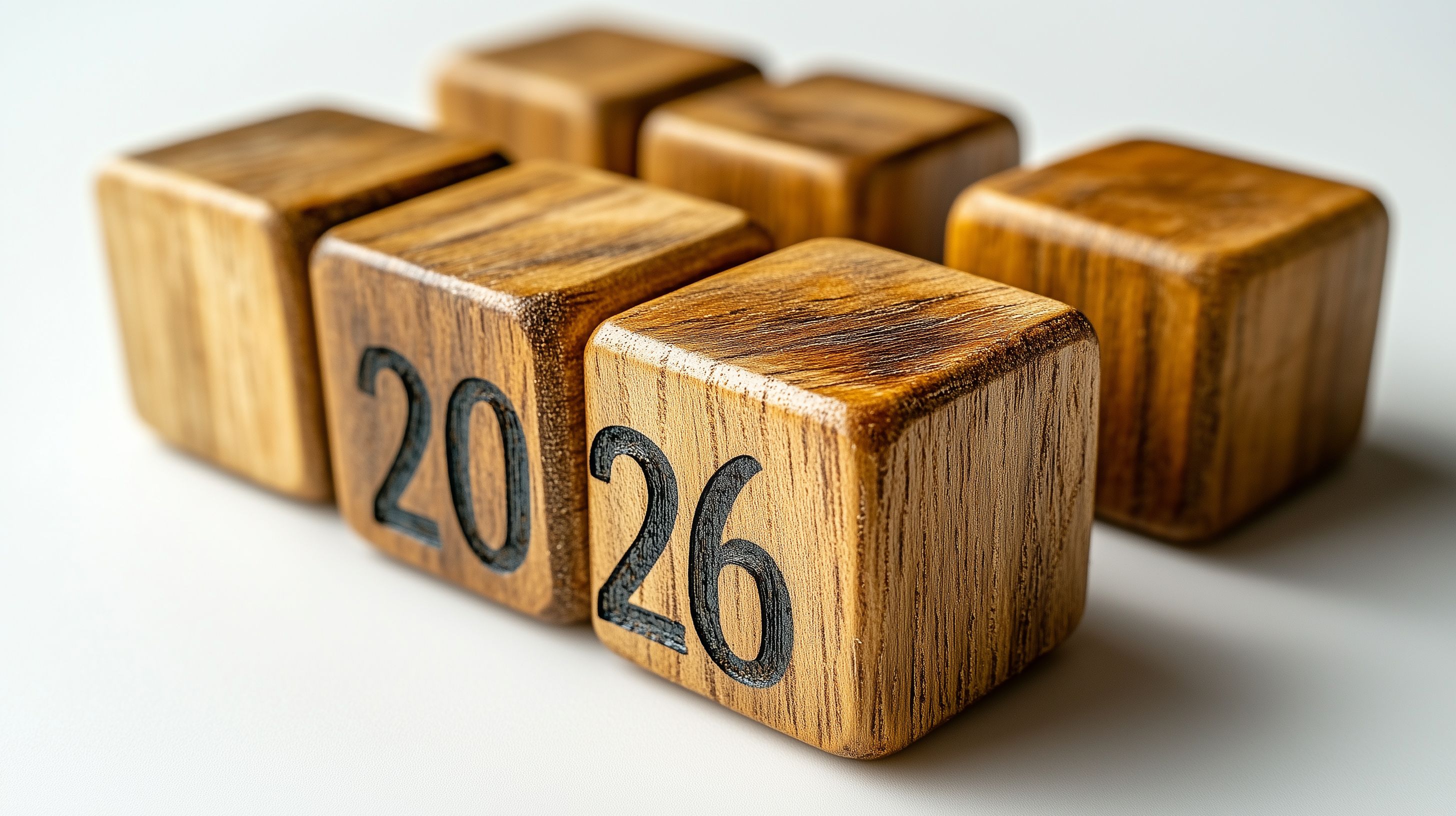 Das Bild zeigt mehrere hölzerne Würfel, die die Zahl 2026 darauf aufgedruckt haben. Die Würfel haben eine natürliche, rustikale Optik und stehen vor einem weißen Hintergrund. Die einfache Komposition und die neutrale Farbgebung verleihen dem Bild einen minimalistischen Charakter. Dieses Foto eignet sich hervorragend als Stockfoto für verschiedene Anwendungen, z.B. für Blogger, Grafikdesigner oder Unternehmen, die nach einem hochwertigen, kostenlosen Bild für ihre Projekte wie Werbeanzeigen, Websites oder Social-Media-Posts suchen. Das Foto ist in hoher Auflösung verfügbar und unter der Creative-Commons-Lizenz lizenziert.
