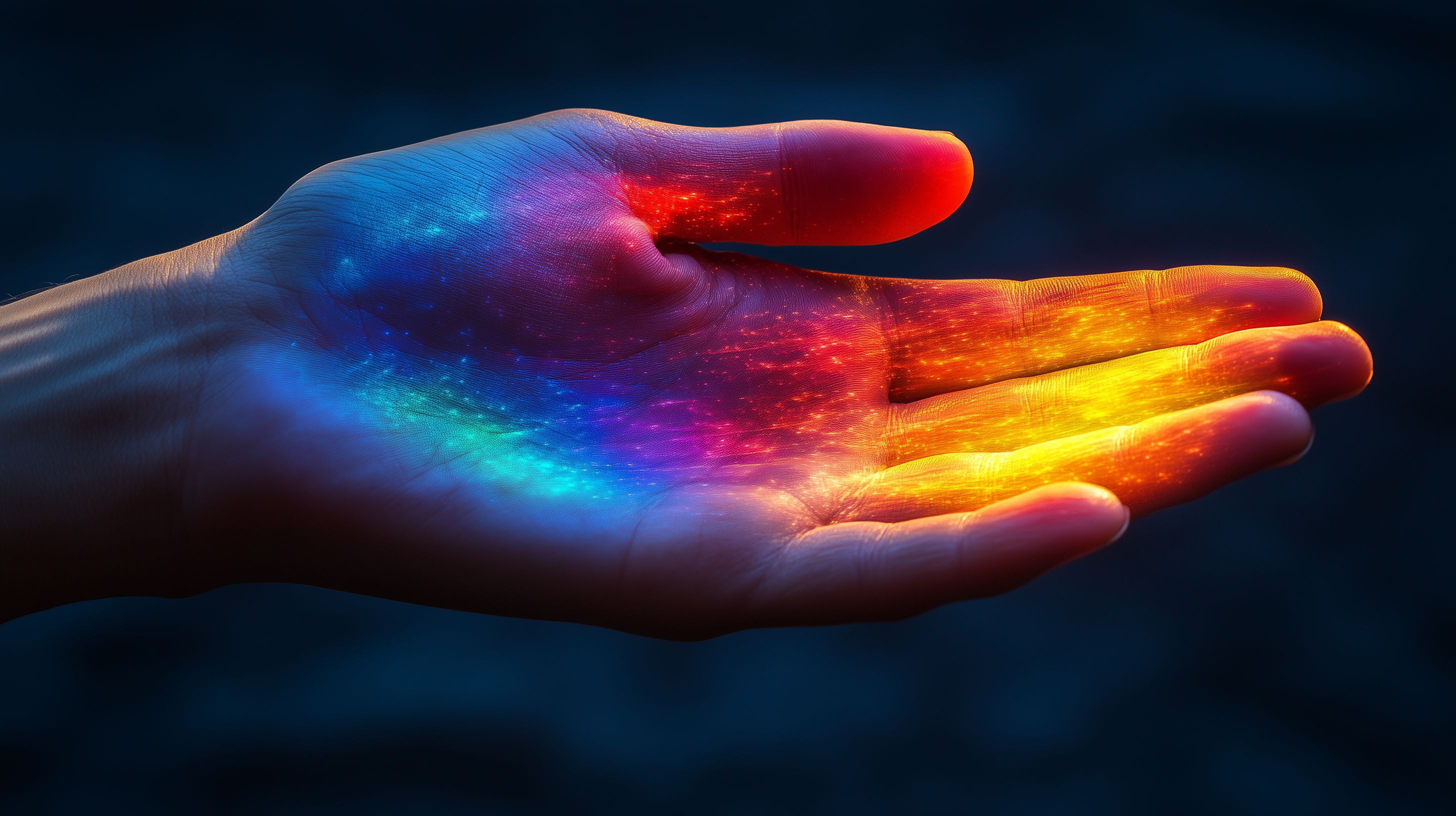 Dieses faszinierende Stockfoto zeigt eine Handfläche, die in einem sanften Lichtspiel von Regenbogenfarben erstrahlt. Die Perspektive ist nah und fokussiert, was den Eindruck einer fast spirituellen, beruhigenden Energie vermittelt. Die Komposition lenkt den Blick gezielt auf die Handinnenfläche, die als symbolischer Ort der Heilung und Kreativität erscheint. Dieses Bild eignet sich hervorragend für den Einsatz in Blogbeiträgen, Newslettern oder sozialen Medien rund um Themen wie Entspannung, Meditation, Achtsamkeit oder Selbstfindung. Als hochauflösendes Stockfoto unter einer Creative-Commons-Lizenz steht es kostenfrei zur Verfügung.