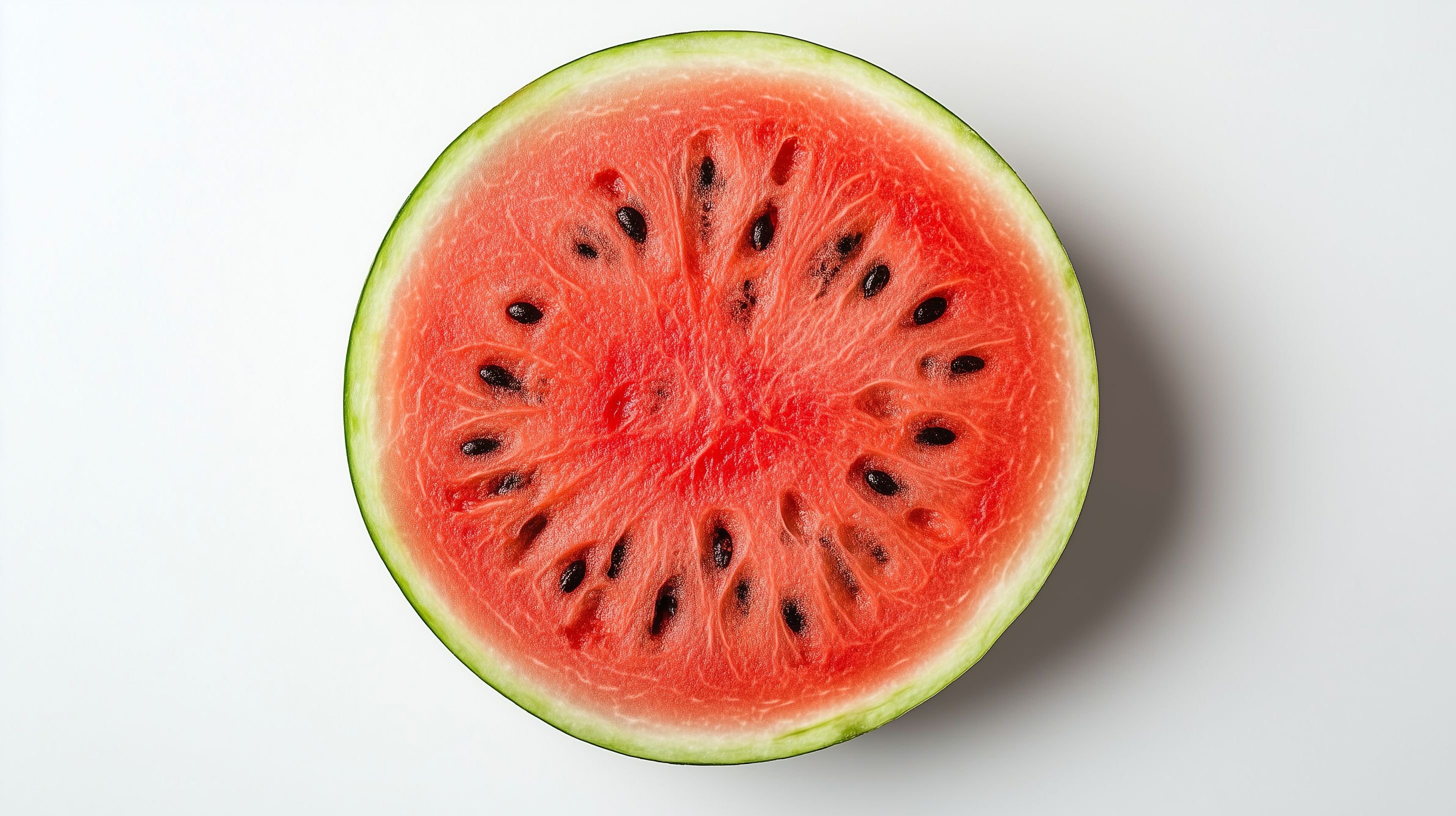 Das Bild zeigt eine frisch aufgeschnittene Wassermelonenhälfte auf weißem Hintergrund. Die intensive rote Farbe des Fruchtfleischs kontrastiert perfekt mit dem hellen Grün der Schale. Die runden, schwarzen Kerne sind deutlich zu erkennen. Die Nahaufnahme lässt die saftige und knackige Textur der Melone erahnen. Dieses Stockfoto eignet sich hervorragend für den Einsatz in Sommerrezepten, Gesundheitsartikeln oder Werbekampagnen rund um gesunde Ernährung und Erfrischung. In hoher Auflösung und unter einer Creative-Commons-Lizenz verfügbar, kann es kostenfrei für Ihre Projekte genutzt werden.