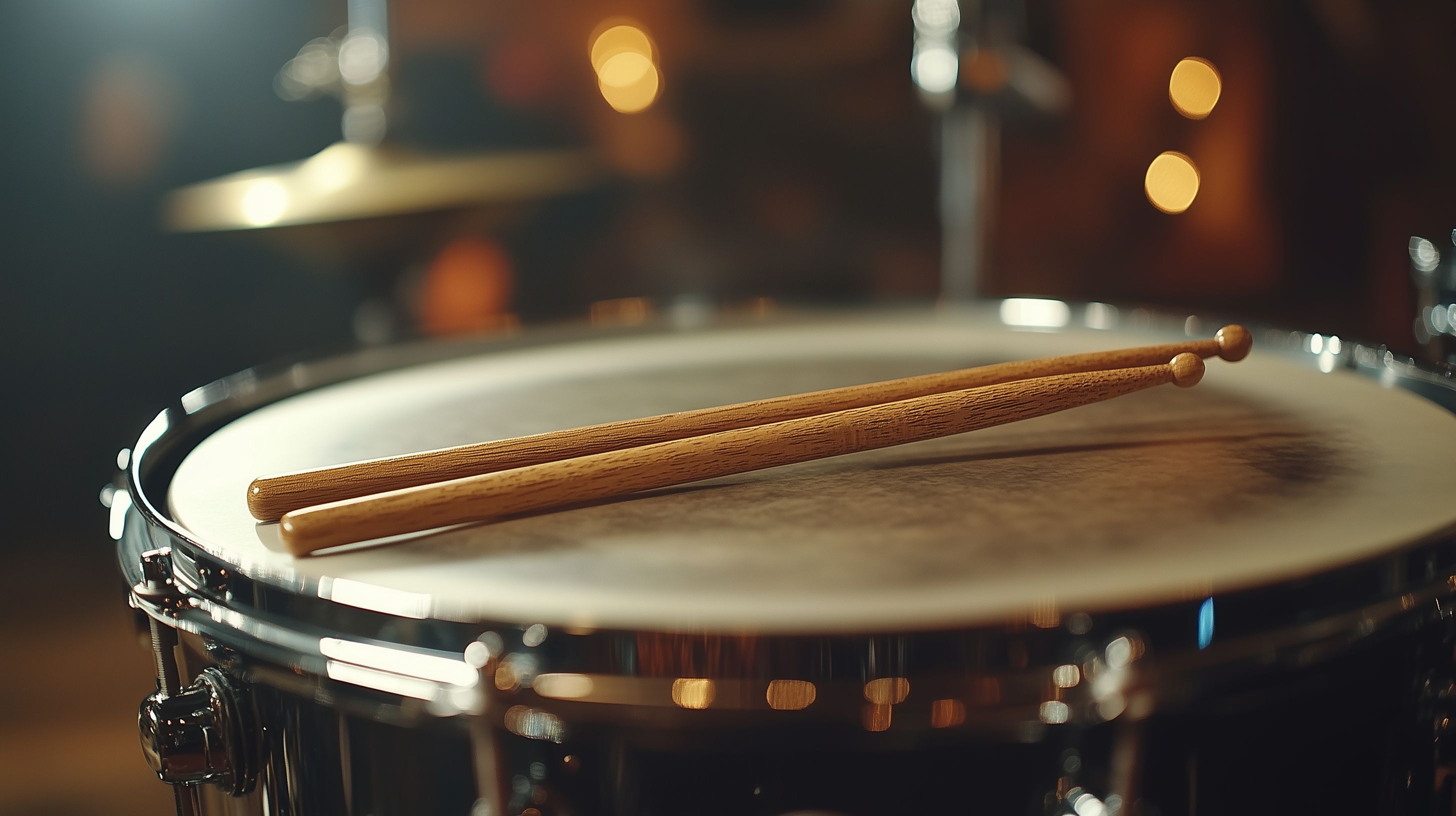 Dieses hochauflösende Stockfoto zeigt eine Nahaufnahme von Drumsticks auf einem Schlagzeug. Die Drumsticks sind aus Holz gefertigt und stehen auf dem glänzenden Schlagzeugfell, umgeben von warmer, gemütlicher Beleuchtung. Das Bild vermittelt eine sinnliche, atmosphärische Stimmung und eignet sich hervorragend für Hintergründe, Werbemittel oder Beiträge rund um Musik, Kreativität und Liveauftritte. Als kostenloses Stockfoto unter einer Creative-Commons-Lizenz kann es vielfältig in Blogs, Newslettern oder sozialen Medien eingesetzt werden.