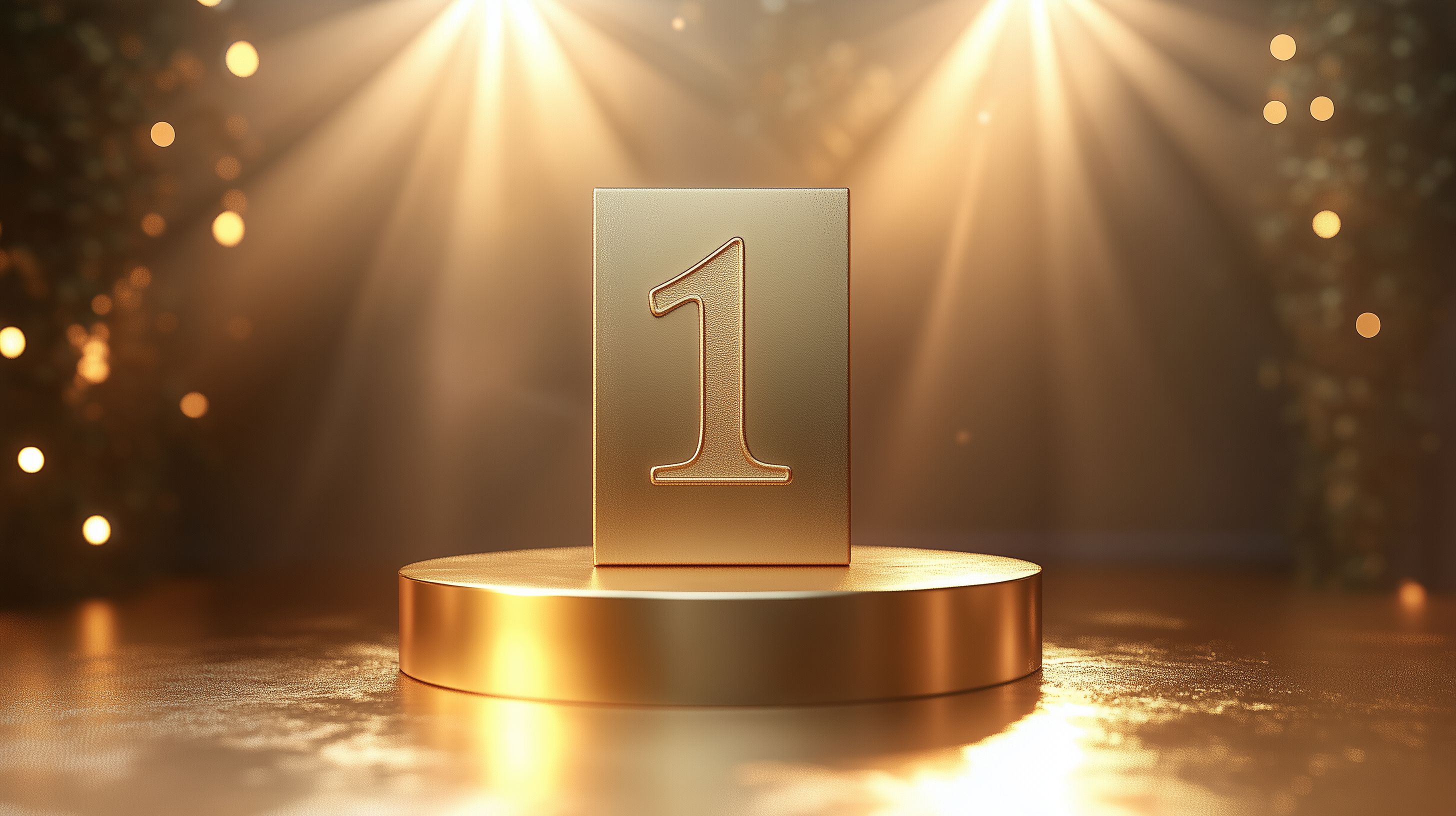 Dieses beeindruckende Foto zeigt einen goldenen Siegerpodest mit der Nummer 1 darauf. Das Bild ist in einem warmen, feierlichen Licht getaucht, das den Glanz und die Pracht des Objekts betont. Der Podest steht im Zentrum des Bildes und wird von Strahlenkränzen umrahmt, die den Eindruck von Ruhm und Erfolg verstärken. Das Foto vermittelt ein Gefühl von Prestige, Leistung und Triumphgefühl. Es eignet sich hervorragend als Stockfoto für Geschäftsberichte, Werbekampagnen, Blogbeiträge oder Social-Media-Posts, die Themen wie Wettbewerb, Auszeichnungen oder Unternehmenserfolg behandeln. Das hochauflösende Bild steht unter einer Creative-Commons-Lizenz zur Verfügung.