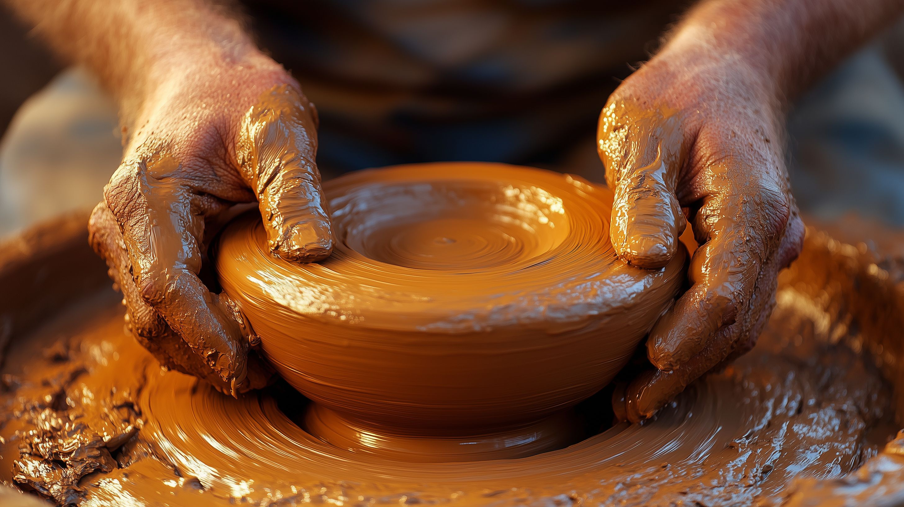 Dieses Foto zeigt einen authentischen Einblick in den Prozess der traditionellen Töpferei. Es ist ein detailreiches Bild, das die geschickten Hände eines Töpfers beim Formen einer Tonschale auf einer Drehscheibe zeigt. Die Oberfläche der Schale ist glatt und gleichmäßig, was die Präzision und Erfahrung des Töpfers widerspiegelt. Die Tonschale hat eine warme, erdige Farbgebung in Brauntönen, die der traditionellen Handwerkskunst einen rustikalen Charakter verleiht. Dieses Stockfoto eignet sich perfekt für Blogbeiträge, Newsletter-Grafiken oder Werbematerialien rund um das Thema Keramik, Handarbeit und kreatives Schaffen. Es ist in hoher Auflösung und unter einer Creative-Commons-Lizenz verfügbar, sodass es kostenfrei für verschiedenste Projekte genutzt werden kann.