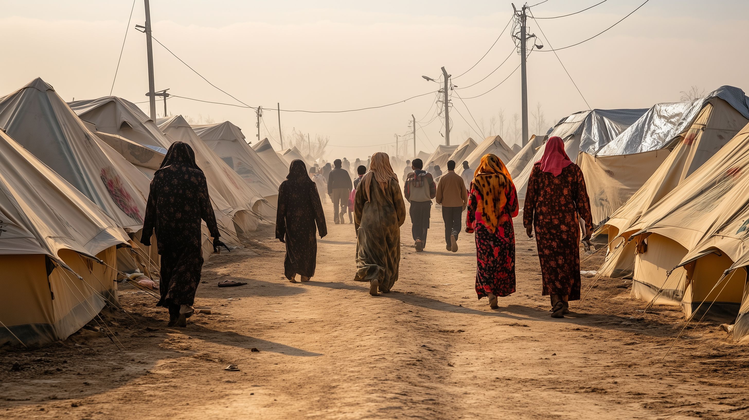 Das Bild zeigt Menschen, die durch ein Flüchtlingslager mit vielen Zelten gehen. Der Boden ist sandig und die Sonne scheint, was eine Atmosphäre der Trostlosigkeit und Entbehrung schafft. Die Personen sind in dunkle Kleidung gehüllt und wirken müde und abgekämpft. Dieses Foto bietet einen eindringlichen Blick auf die Realität von Flüchtlingen, die gezwungen sind, ihr Zuhause zu verlassen und in provisorischen Unterkünften zu leben. Es eignet sich hervorragend für den Einsatz in Artikeln, Blogbeiträgen oder Sozialen Medien, die sich mit den Themen Flüchtlingskrise, humanitäre Hilfe oder soziale Ungleichheit befassen. Als kostenloses Stockfoto in hoher Auflösung und unter einer Creative-Commons-Lizenz stehend, kann es frei genutzt werden.