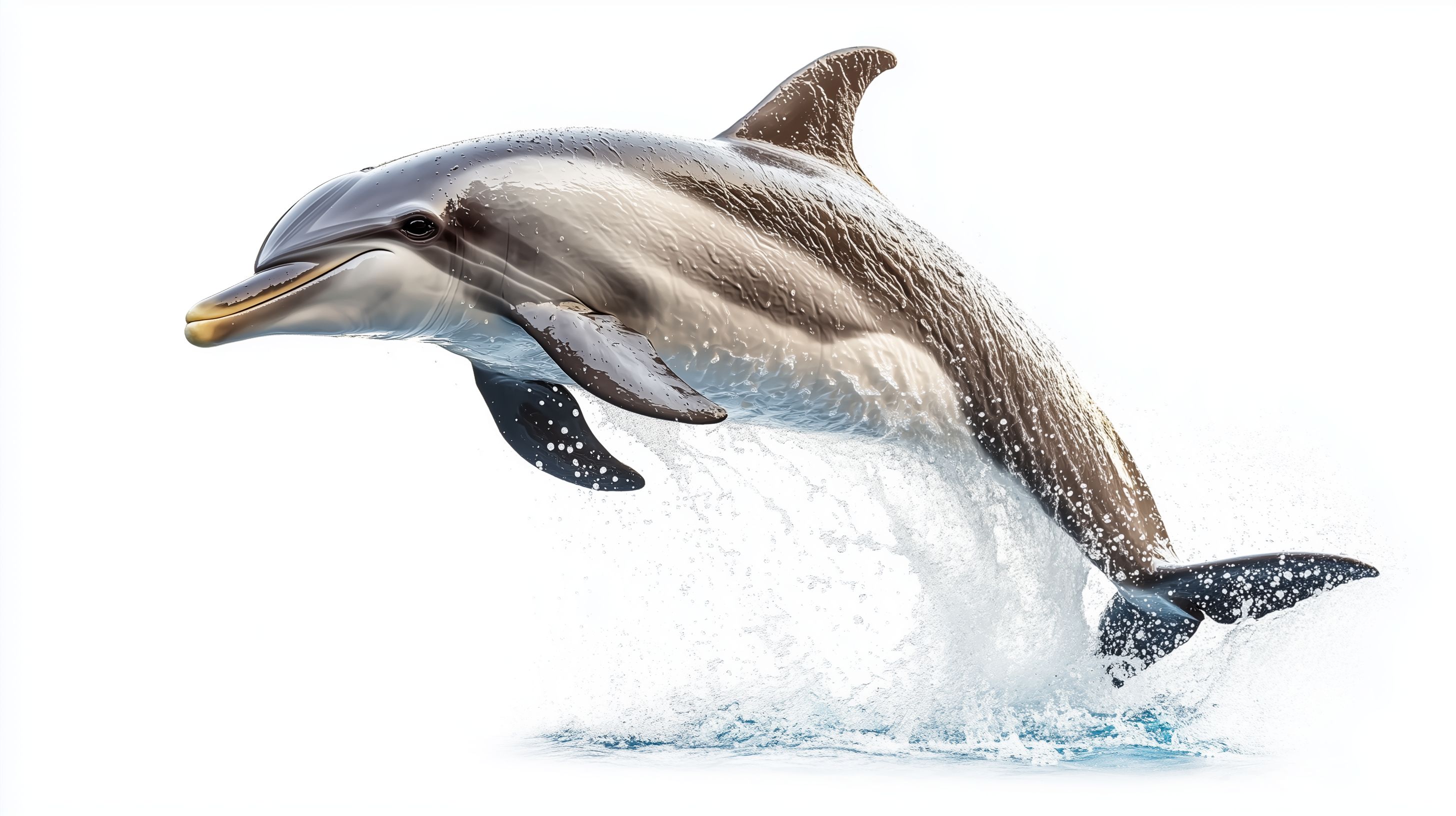 Dieses beeindruckende Foto zeigt einen Delfin, der majestätisch aus dem Wasser springt. Der Delfin hebt sich vor dem weißen Hintergrund deutlich ab und lässt die Dynamik und Kraft des Tieres zur Geltung kommen. Die Fotografie fängt den Moment des Sprungs perfekt ein und vermittelt ein Gefühl von Freiheit und Lebendigkeit. Dieses hochauflösende, lizenzfreie Stockfoto eignet sich ideal für den Einsatz in Blogs, Newslettern, Social-Media-Kanälen oder Werbekampagnen, die ein maritimes, naturnahes oder bewegungsintensives Thema transportieren möchten.