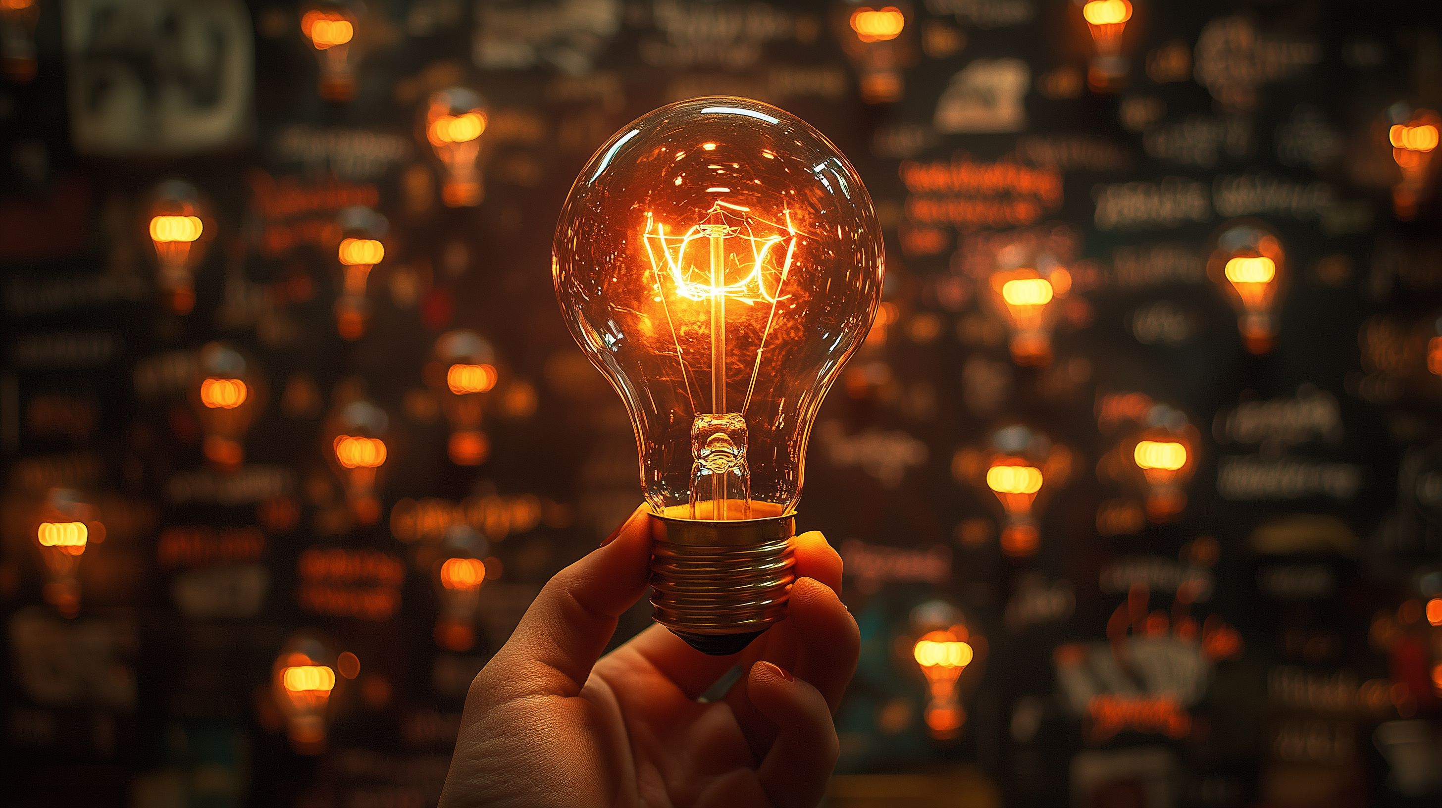 Dieses stimmungsvolle Foto zeigt eine glühende Glühbirne, die von einer Hand gehalten wird, vor einem dunkleren Hintergrund mit vielen leuchtenden Punkten. Die warme, bernsteinfarbene Beleuchtung der Glühbirne erzeugt einen einladenden und inspirierenden Effekt. Das Bild vermittelt Ideen, Kreativität und Innovation. Es eignet sich hervorragend für den Einsatz in Blogs, Newslettern, sozialen Medien oder Werbeanzeigen, die einen kreativen, leuchtenden Akzent setzen möchten. Dieses hochauflösende Stockfoto steht unter einer Creative-Commons-Lizenz kostenlos zur Verfügung.