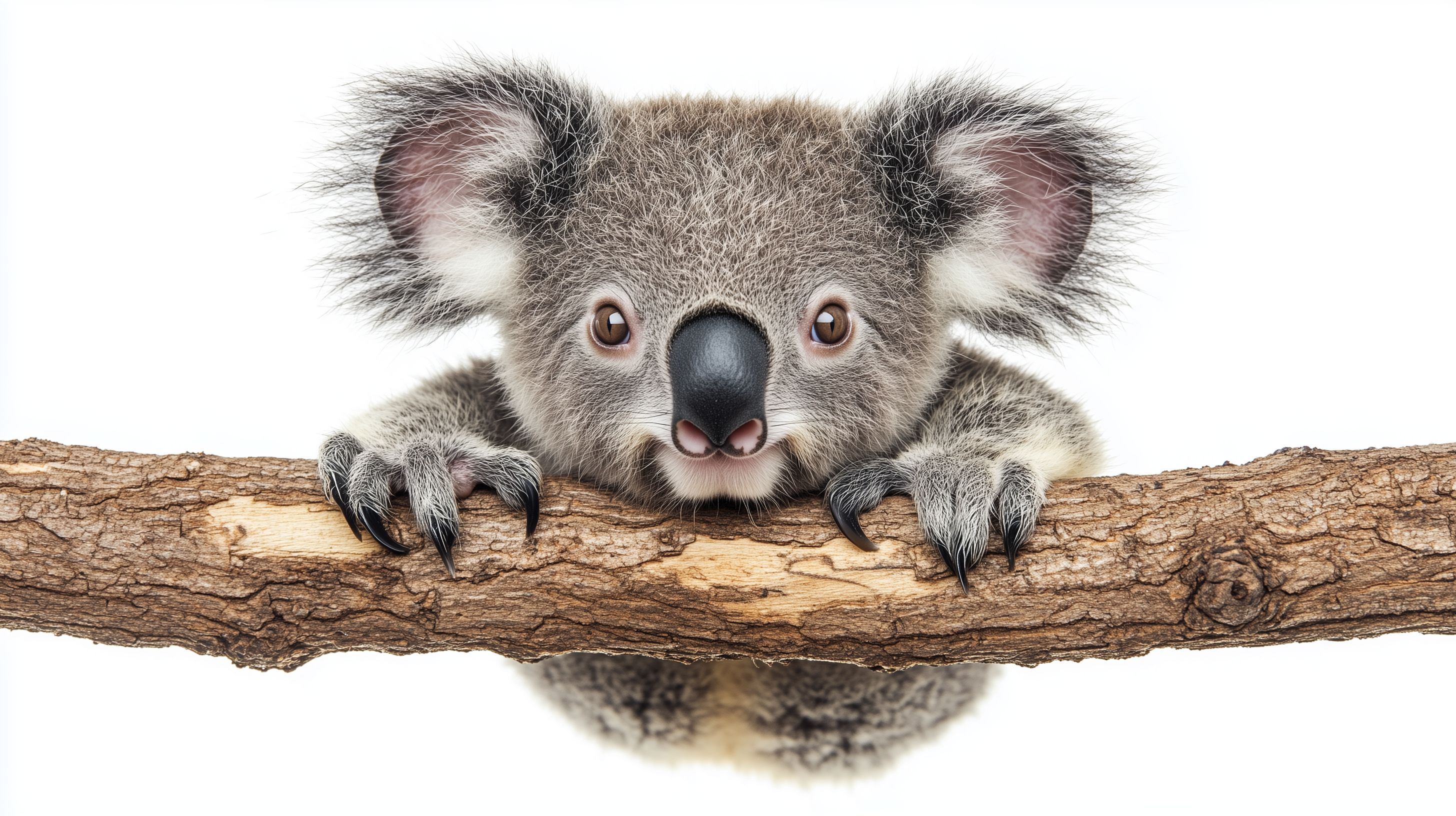 Die Nahaufnahme zeigt einen niedlichen Baby-Koala, der sich mit seinen Krallen an einem Ast festklammert. Mit seinen großen dunklen Augen und seinem weichen, grauen Fell sieht der kleine Koala sehr süß und zart aus. Das Foto ist perfekt für Illustrationen, Werbung oder Social-Media-Beiträge rund um das Thema Tierwelt, Naturschutz und Australien. Als hochauflösendes Stockfoto unter einer kostenlosen Creative-Commons-Lizenz eignet es sich hervorragend für den Einsatz in Blogs, Artikeln oder Präsentationen.