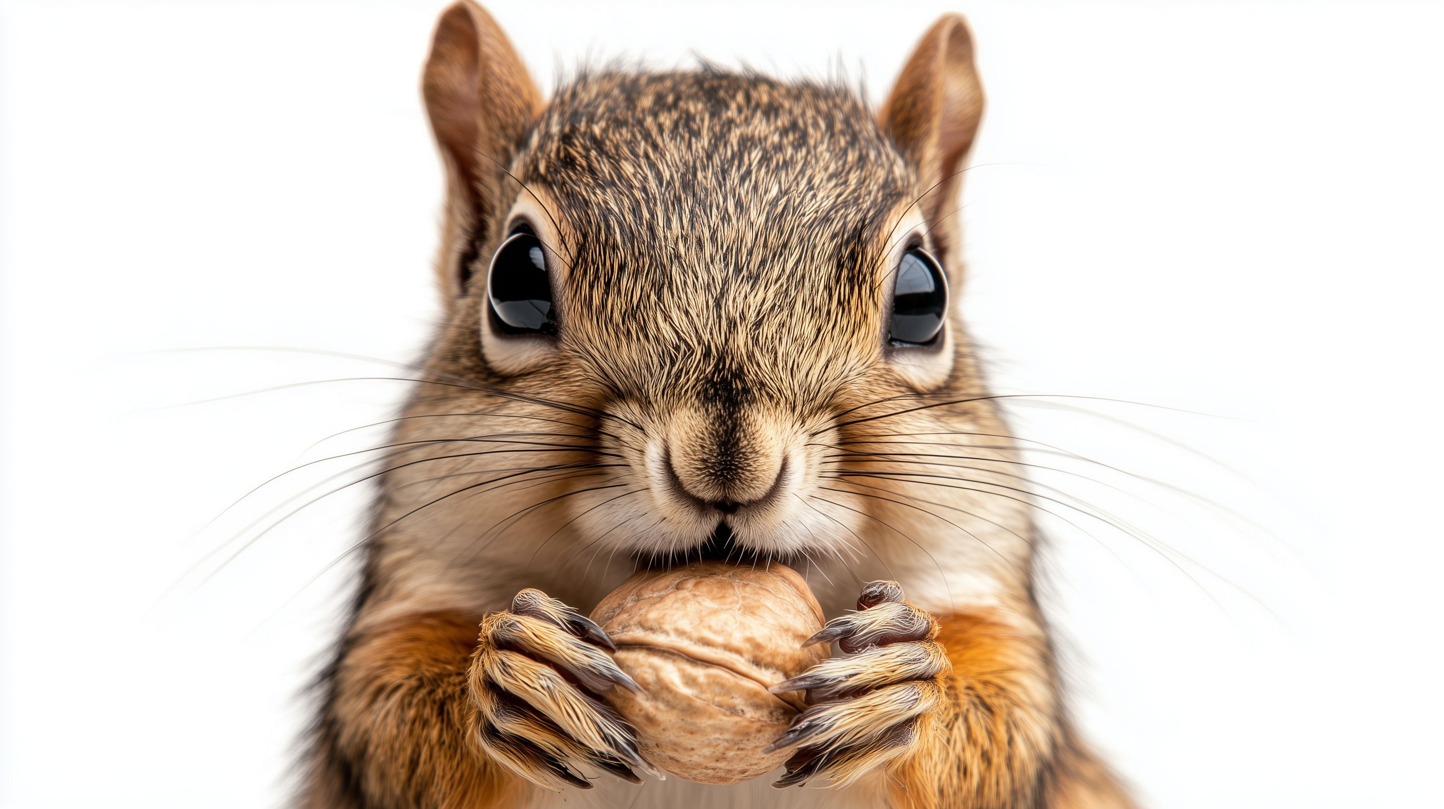 Dieses detailreiche Stockfoto zeigt ein Eichhörnchen im Nahaufnahmemodus. Das Tier hält eine große Nuss fest in seinen vordersten Pfoten, seine runden, glänzenden Augen blicken direkt in die Kamera. Das feine, kupferfarbene Fell sowie die langen, spitzen Ohren charakterisieren diesen Nager. Der weiße Hintergrund lässt das Eichhörnchen im Fokus stehen und unterstreicht seine natürliche Schönheit. Dieses hochauflösende Stockfoto ist ideal für Blogbeiträge, Social-Media-Posts oder Werbeanzeigen rund um das Thema Tiere, Natur und Freisteller. Es steht unter einer Creative-Commons-Lizenz zum kostenlosen Download zur Verfügung.