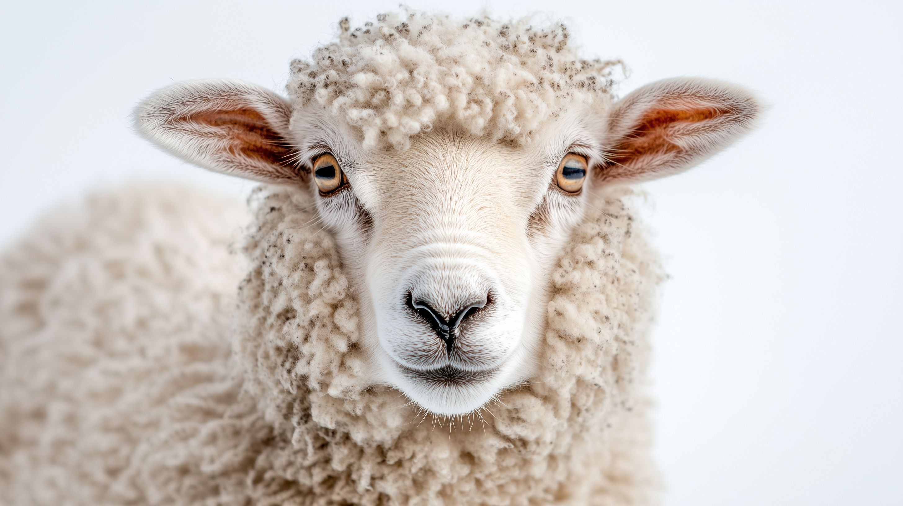 Dieses Foto zeigt eine Nahaufnahme eines süßen, wuscheligen Schafs. Das Gesicht des Tieres dominiert das Bild, sodass der Betrachter den Augen und der weichen, lockigen Wolle des Schafs direkt begegnet. Der weiße Hintergrund lenkt den Blick ganz auf das Motiv und lässt es ruhig und einladend erscheinen. Dieses Stockfoto eignet sich hervorragend für den Einsatz in Blogbeiträgen, Social-Media-Posts, Werbekampagnen und mehr, die ein natürliches, freundliches Tiermotiv benötigen. Das hochauflösende Bild ist unter einer Creative-Commons-Lizenz frei verwendbar.