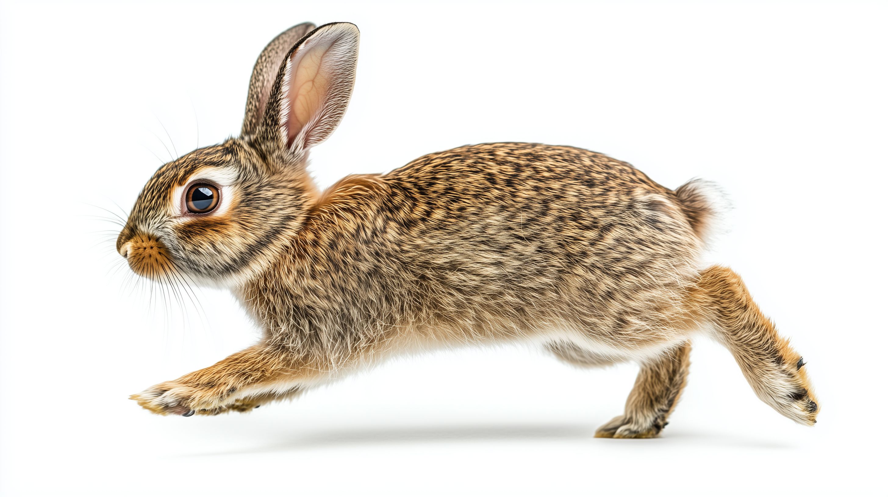 Dieses lebendige Foto zeigt einen rasanten Hasen in voller Bewegung vor einem weißen Hintergrund. Das kompakte, gepunktete Fellknäul wirkt durch die Dynamik und Geschwindigkeit des Tiers sehr fesselnd. Die detailreiche Nahaufnahme erlaubt einen beeindruckenden Blick auf die Anatomie und die Schnelligkeit des Nagers. Dieses freistehende Stockfoto in hoher Auflösung eignet sich hervorragend für den Einsatz in Blogs, Newslettern, Social-Media-Beiträgen oder Werbekampagnen rund um das Thema Tiere, Natur und Bewegung. Es steht unter einer Creative-Commons-Lizenz kostenlos zur Verfügung.