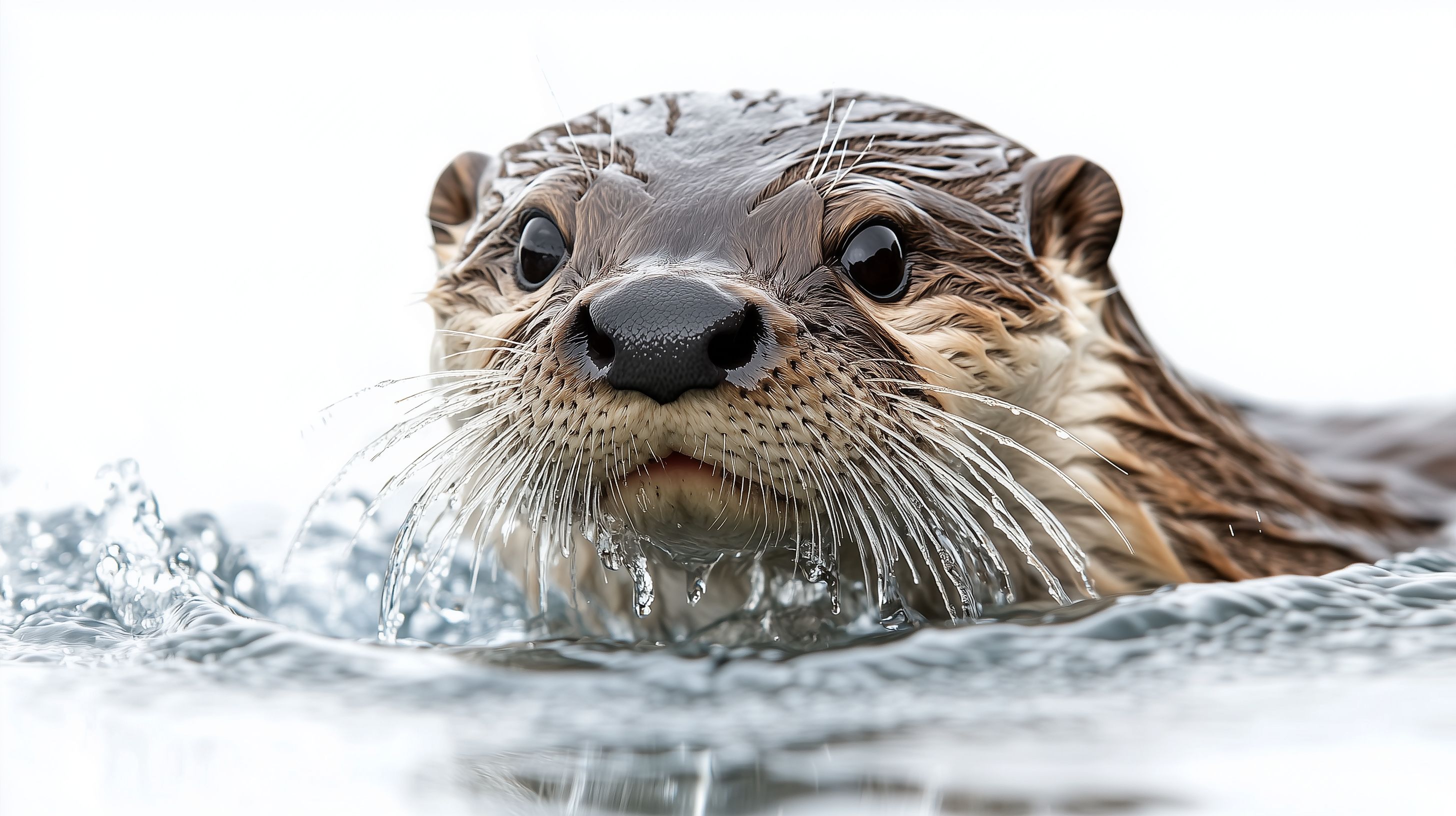 Dieses faszinierende Bild zeigt das Gesicht eines neugierig dreinblickenden Otters, der teilweise im Wasser eingetaucht ist. Der Otter blickt mit großen, dunklen Augen direkt in die Kamera, seine feuchte Schnauze ist mit feinen Vibrissen besetzt. Der Kontrast zwischen dem nassen Fell und der kristallklaren Wasseroberfläche verleiht dem Bild eine beinahe surreale Atmosphäre. Dieses hochauflösende Foto eignet sich hervorragend als kostenloses Stockfoto für Blogbeiträge, Werbekampagnen oder Social-Media-Postings in den Bereichen Tierwelt, Natur und Fotografie. Es steht unter einer Creative-Commons-Lizenz zur Verfügung.