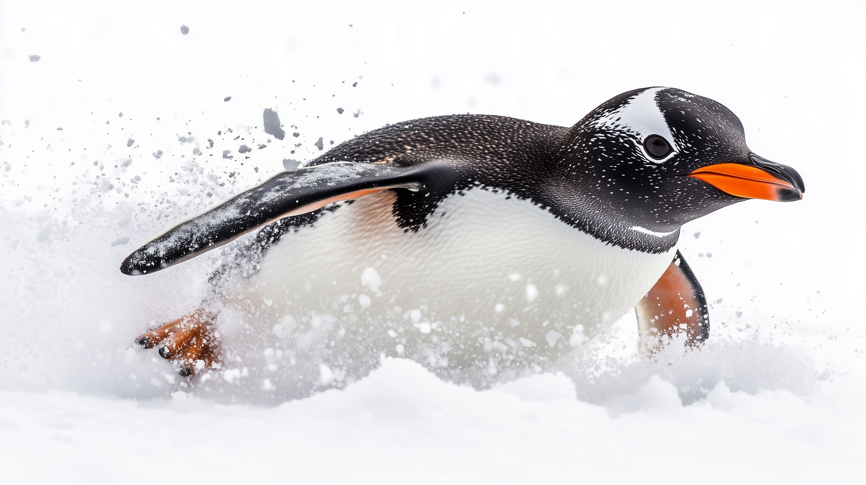 Dieses atemberaubende Foto zeigt einen eleganten Pinguin, der mit Schwung über das Eis gleitet. Der Pinguin hat ein schwarz-weißes, kontrastreiches Gefieder, das perfekt zur eisigen Umgebung passt. Die Perspektive des Bildes lässt den Betrachter fast selbst das Gefühl von Geschwindigkeit und Bewegung spüren. Dieses hochauflösende Stockfoto eignet sich hervorragend für den Einsatz in Blogs, Newslettern, Social-Media-Beiträgen oder Werbekampagnen, die eine natürliche, winterliche Stimmung vermitteln möchten. Es steht unter einer Creative-Commons-Lizenz zur freien Verwendung zur Verfügung.