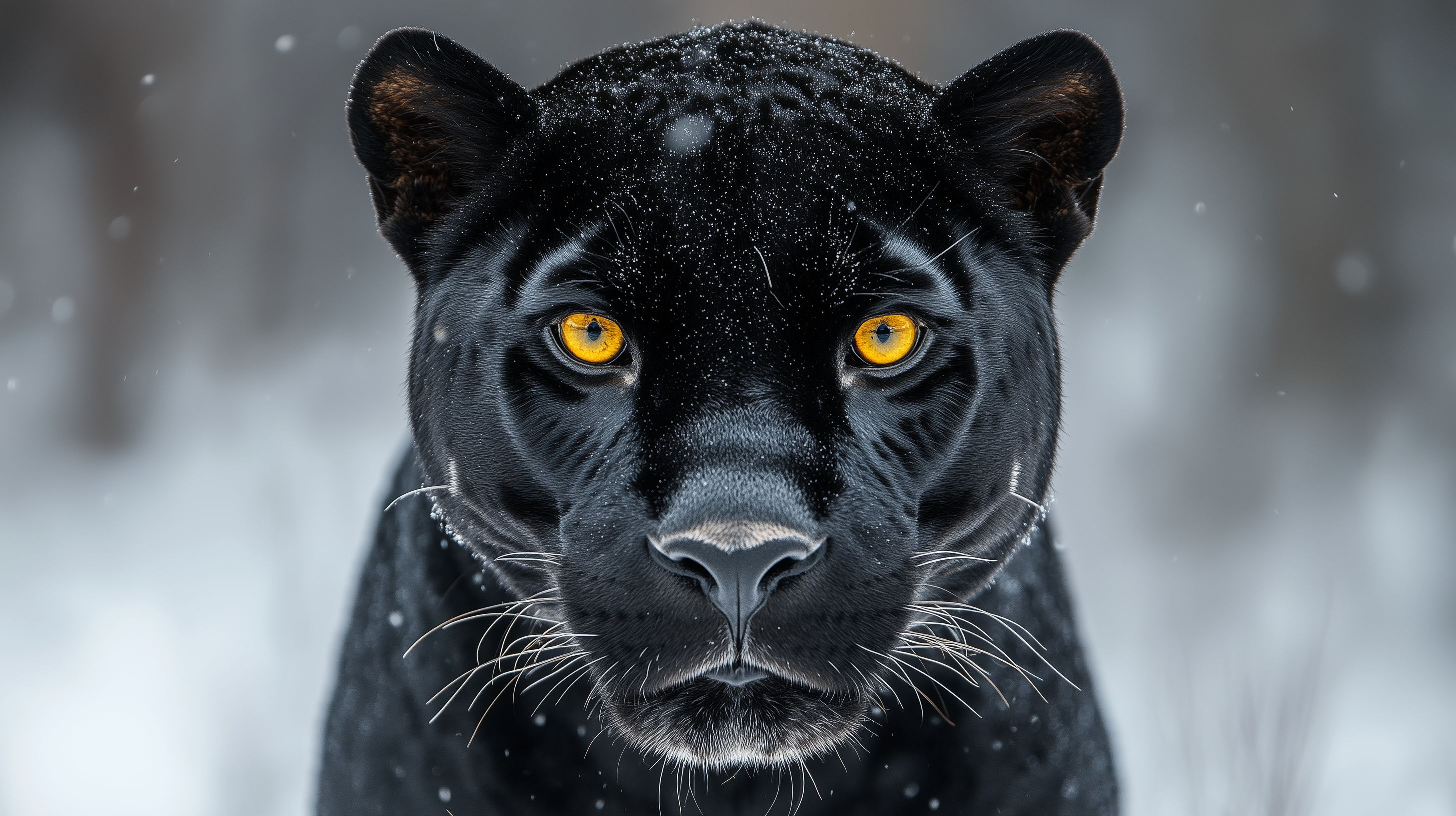 Dieses faszinierende Foto zeigt eine Nahaufnahme eines majestätischen schwarzen Jaguars inmitten einer winterlichen Landschaft. Der Betrachter wird sofort von den intensiven, leuchtend gelben Augen des Raubtieres gefesselt, die einen unerbittlichen, gefährlichen Blick ausstrahlen. Das glänzende, schwarze Fell des Jaguars hebt sich kontrastreich vom weißen Schnee ab und verleiht dem Bild eine eindrucksvolle Dramatik. Die Schärfe der Aufnahme bringt die beeindruckenden Details wie die spitzen Krallen und die feinen Gesichtszüge des Tieres hervor. Dieses Stockfoto in hoher Auflösung eignet sich hervorragend für den Einsatz in Blogs, Newslettern, Social-Media-Beiträgen oder Werbekampagnen, die eine Assoziation von Kraft, Wildnis und Bedrohlichkeit vermitteln möchten. Es steht unter einer Creative-Commons-Lizenz zur freien Nutzung zur Verfügung.