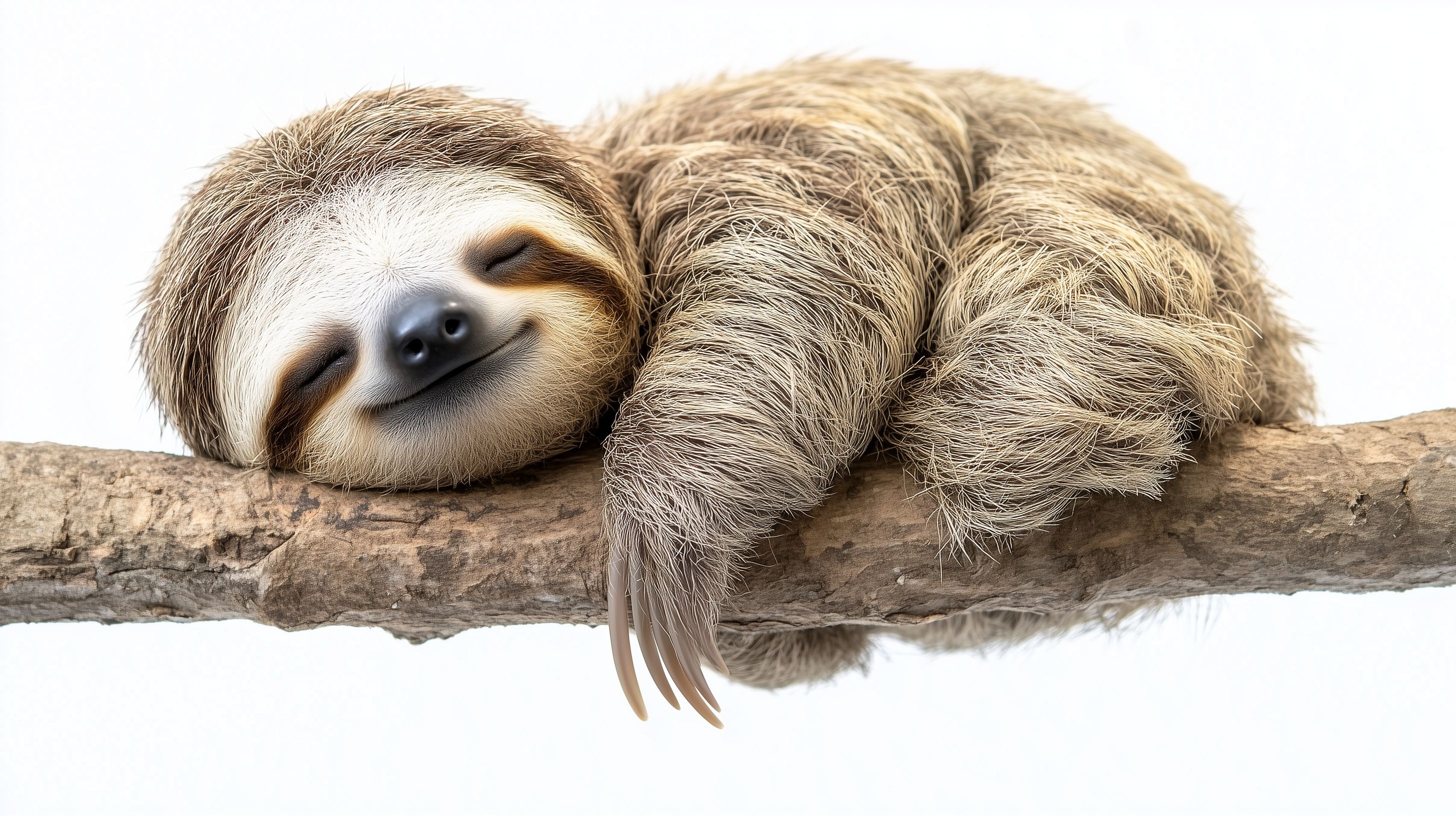 Dieses fotorealistische Bild zeigt ein friedlich schlafendes Faultier, das gemütlich auf einem Ast ruht. Das Faultier hat einen dicken, fellbedeckten Körper und seine langen Arme sind entspannt um den Ast geschlungen. Die Schärfe der Nahaufnahme lässt die detaillierten Texturen des Fells und die ruhig geschlossenen Augen des Tieres deutlich erkennen. Das Foto bietet eine wunderbare Perspektive auf die Ruhe und Gelassenheit des Faultiers in seiner natürlichen Umgebung. Dieses hochauflösende Stockfoto unter Creative Commons-Lizenz eignet sich hervorragend für den Einsatz in Blogbeiträgen, Newslettern, Social-Media-Kanälen oder Werbematerialien mit Natur- und Tierbezug.