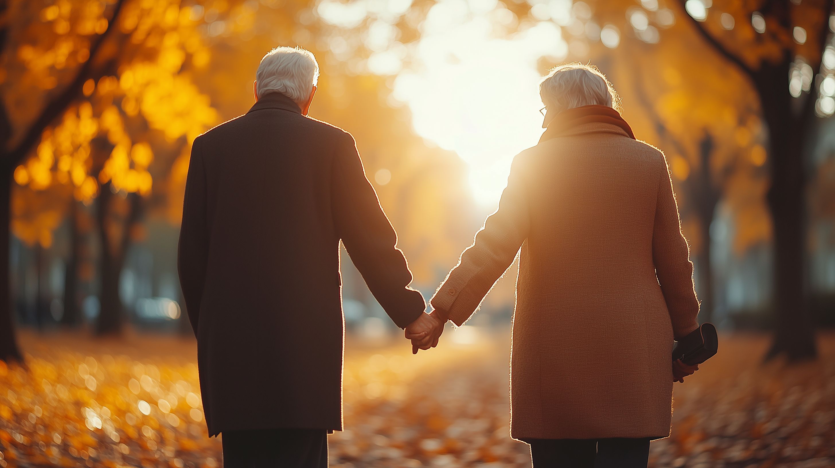 Das Bild zeigt ein älteres Paar, das bei einem Spaziergang durch einen herbstlichen Park die schöne Jahreszeit genießt. Die Sonne strahlt warm durch das goldene Laub der Bäume und erzeugt eine romantische Stimmung. Die beiden sind Hand in Hand unterwegs und vermitteln so ein Gefühl von Verbundenheit und Geborgenheit im Alter. Dieses kostenlose Stockfoto in hoher Auflösung eignet sich hervorragend für Blogbeiträge, Newsletter oder Werbung rund um Themen wie Senioren, Natur, Jahreszeiten oder Paarbeziehungen. Es steht unter der Creative-Commons-Lizenz zur freien Verwendung zur Verfügung.