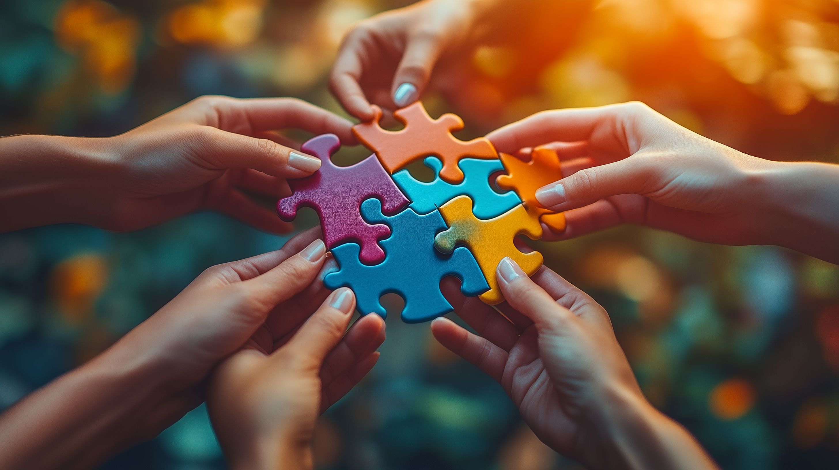 Dieses Bild zeigt mehrere Hände, die zusammen Puzzle-Teile in verschiedenen Farben halten und zusammenfügen. Es symbolisiert die Teamarbeit und Kreativität, die nötig sind, um gemeinsam Lösungen zu finden und Herausforderungen zu bewältigen. Die bunte, abstrakte Darstellung der Puzzle-Teile unterstreicht die Vielfalt der Ideen und Perspektiven, die bei einer erfolgreichen Zusammenarbeit zusammenkommen. Das Foto eignet sich hervorragend als Hintergrund oder visuelle Ergänzung für Artikel, Werbematerial oder Social-Media-Posts rund um Themen wie Teambuilding, Strategie, Problemlösung und Unternehmenserfolg. Das hochauflösende Stockfoto ist unter einer Creative-Commons-Lizenz frei verfügbar.