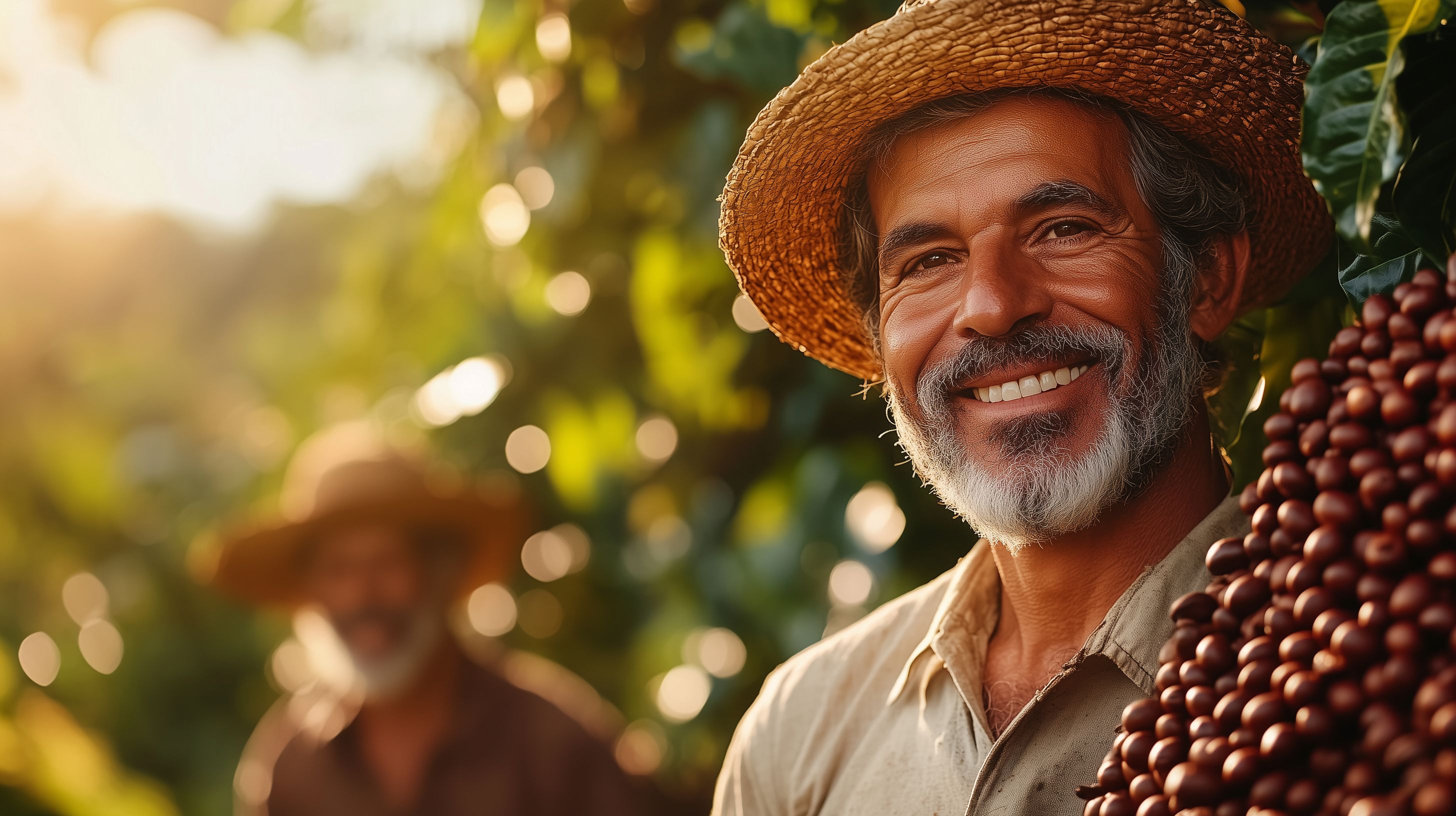 Dieses Foto zeigt einen lächelnden Landwirt, der stolz seine frisch geernteten Kaffeebohnen präsentiert. Mit seinem Strohhut und dem üppigen Bart strahlt er Bodenständigkeit und Authentizität aus. Im Hintergrund sind reife, dunkelrote Kaffeekirschen zu sehen, die eine tropische Atmosphäre vermitteln. Dieses Bild eignet sich hervorragend für den Einsatz in Blogbeiträgen, Werbekampagnen oder Social-Media-Kanälen, die sich mit nachhaltiger Landwirtschaft, Kaffeeproduktion oder regionalen Produkten befassen. Als hochauflösendes Stockfoto unter einer Creative-Commons-Lizenz ist es kostenfrei für private und kommerzielle Zwecke nutzbar.