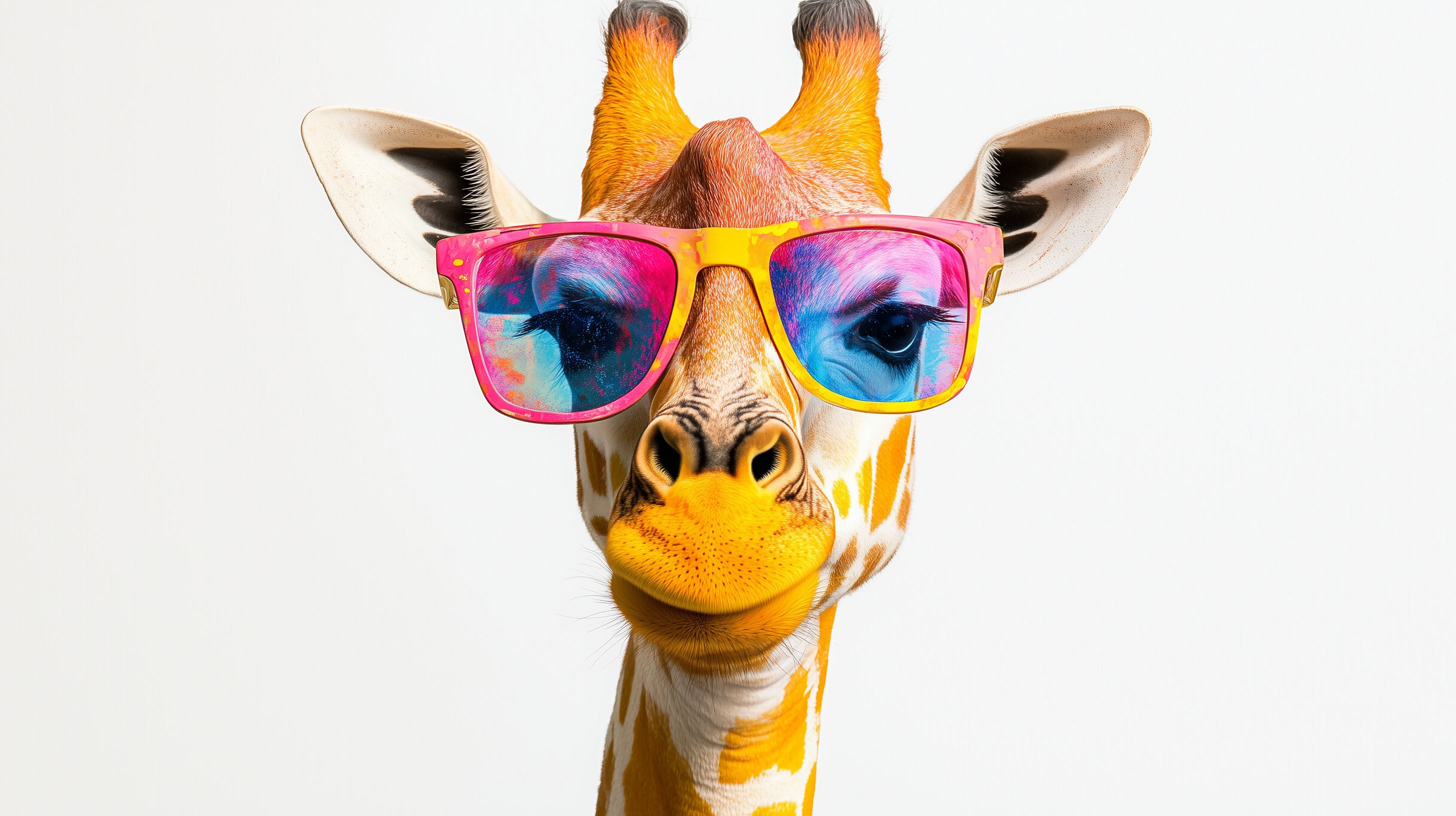 Das Foto zeigt eine farbenfrohe Cartoon-Giraffe, die eine bunte Sonnenbrille trägt. Die Giraffe hat einen markanten Gesichtsausdruck und ihre Augen strahlen Lebendigkeit und Fröhlichkeit aus. Mit ihrer auffälligen, lebendig gestalteten Optik wirkt die Giraffe sehr verspielt und komisch. Dieses kostenlose Stockfoto in hoher Auflösung kann ideal für Blog-Beiträge, Social-Media-Posts, Newsletter-Designs oder Werbematerialien eingesetzt werden. Es steht unter einer Creative-Commons-Lizenz zur Verfügung.