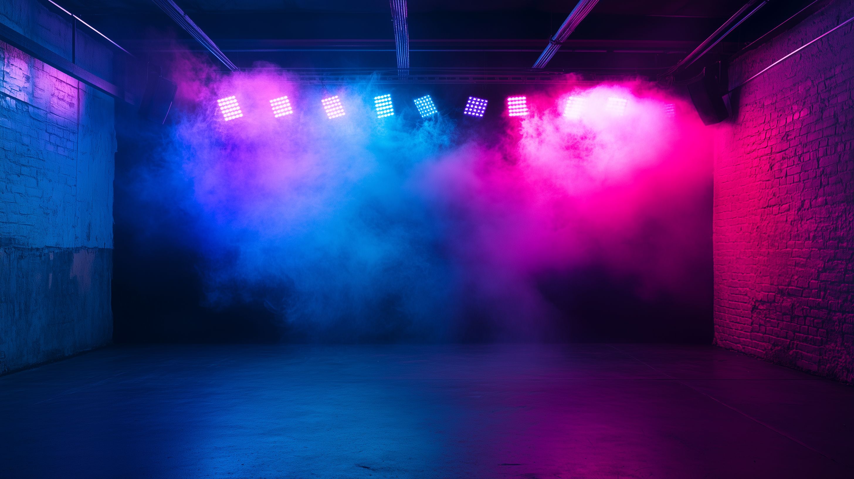 Dieses beeindruckende Foto zeigt eine düstere, aber faszinierende Bühnenszene. Der Raum ist fast vollständig in Dunkelheit gehüllt, lediglich eine intensive, blaue und lila Beleuchtung erhellt den Ort. Der Rauch, der sich durch den Raum zieht, verleiht der Szene eine mystische Atmosphäre und erzeugt eine Stimmung von Spannung und Erwartung. Die Komposition mit den markanten Lichteffekten und der klaren, industriellen Ästhetik machen dieses Foto zu einem hervorragenden Hintergrundbild für Blogs, Newsletter, Social-Media-Posts oder Werbematerial rund um Konzerte, Musikevents oder Bühnenshows. Das hochauflösende, kostenlose Stockfoto unter Creative-Commons-Lizenz bietet vielseitige Einsatzmöglichkeiten.