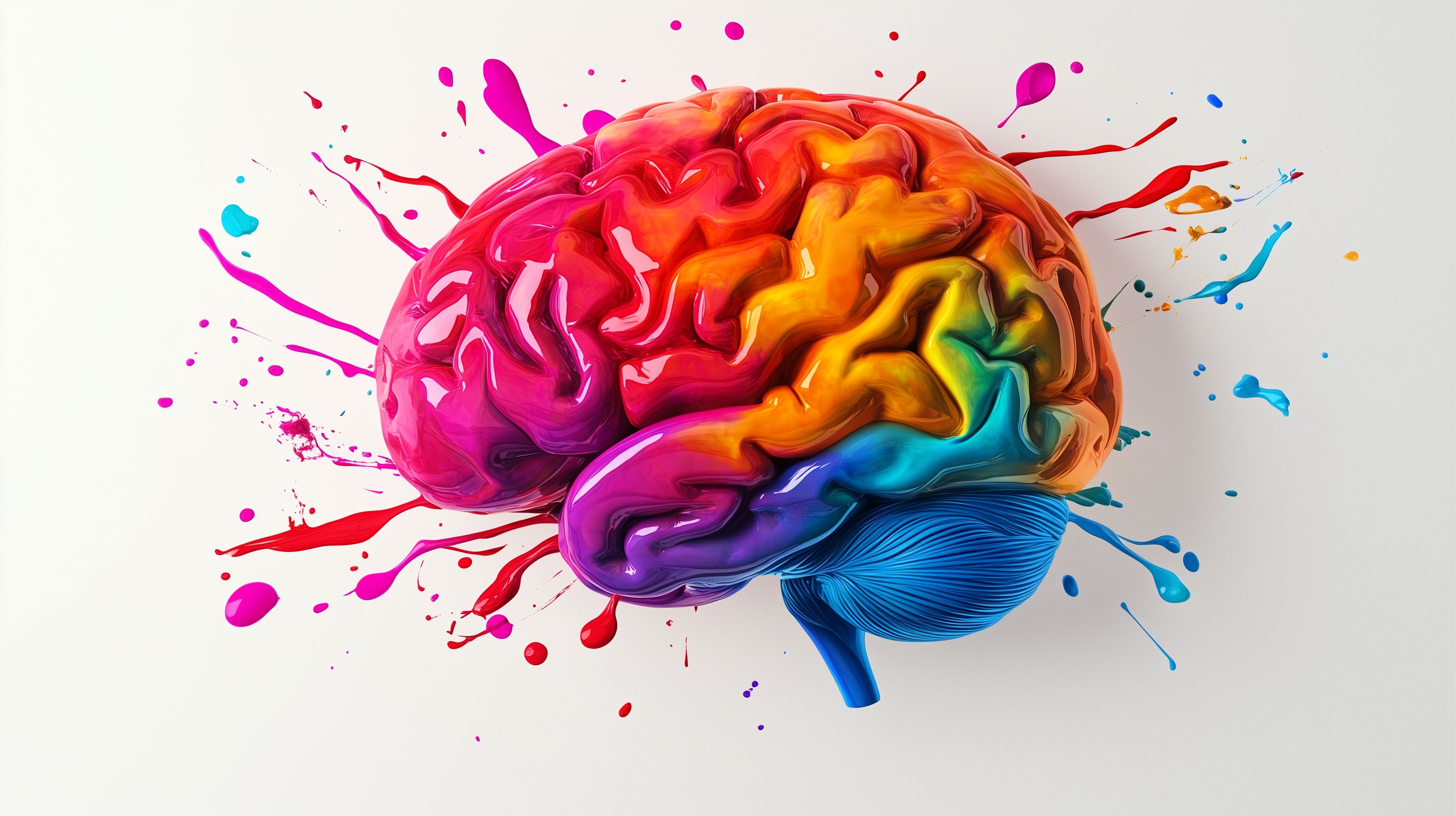 Diese lebendige Illustration zeigt ein menschliches Gehirn, das mit leuchtenden, bunten Farben gefüllt ist. Die verschiedenen Hirnregionen sind in einem Regenbogenspektrum dargestellt, was die Kreativität und Vielseitigkeit des Denkprozesses symbolisiert. Das Bild vermittelt eine positive, dynamische Stimmung und kann in vielen Kontexten eingesetzt werden, wie etwa in Blogbeiträgen zur psychischen Gesundheit, in Werbekampagnen für Bildung oder Kreativität oder in sozialen Medien. Als hochauflösendes, kostenloses Stockfoto unter einer Creative-Commons-Lizenz ist es ideal für den Einsatz in verschiedensten Projekten.