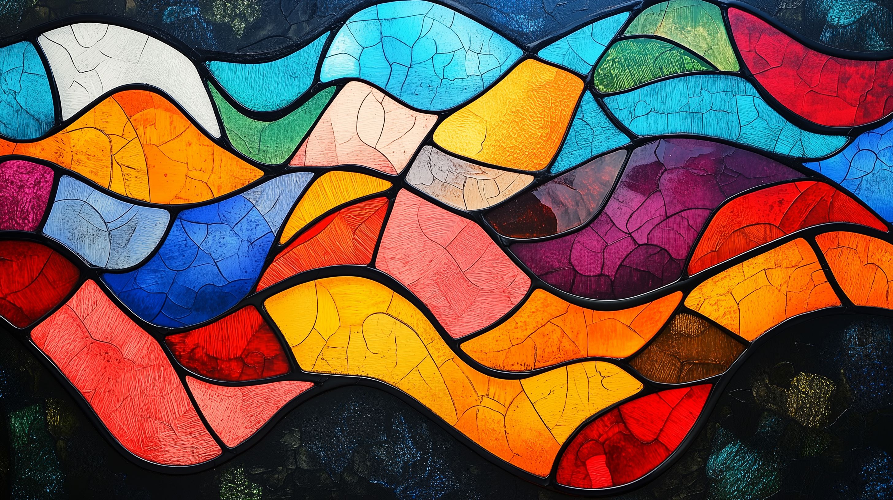 Dieses farbenprächtige Bild zeigt ein abstraktes Design aus bunten Wellenmotiven in Glas. Die Komposition besteht aus organisch geschwungenen Formen in einem Farbspektrum von Blau, Grün, Orange, Rot und Gelb. Die Glasstücke sind so angeordnet, dass sie ein dynamisches, fließendes Muster ergeben, das an Wellen oder Landschaften erinnert. Dieses einzigartige Kunstwerk eignet sich hervorragend als Eye-Catcher für Blogs, Newsletter, Social-Media-Posts oder Werbeanzeigen. Das hochauflösende Stockfoto ist unter einer Creative-Commons-Lizenz frei verwendbar.