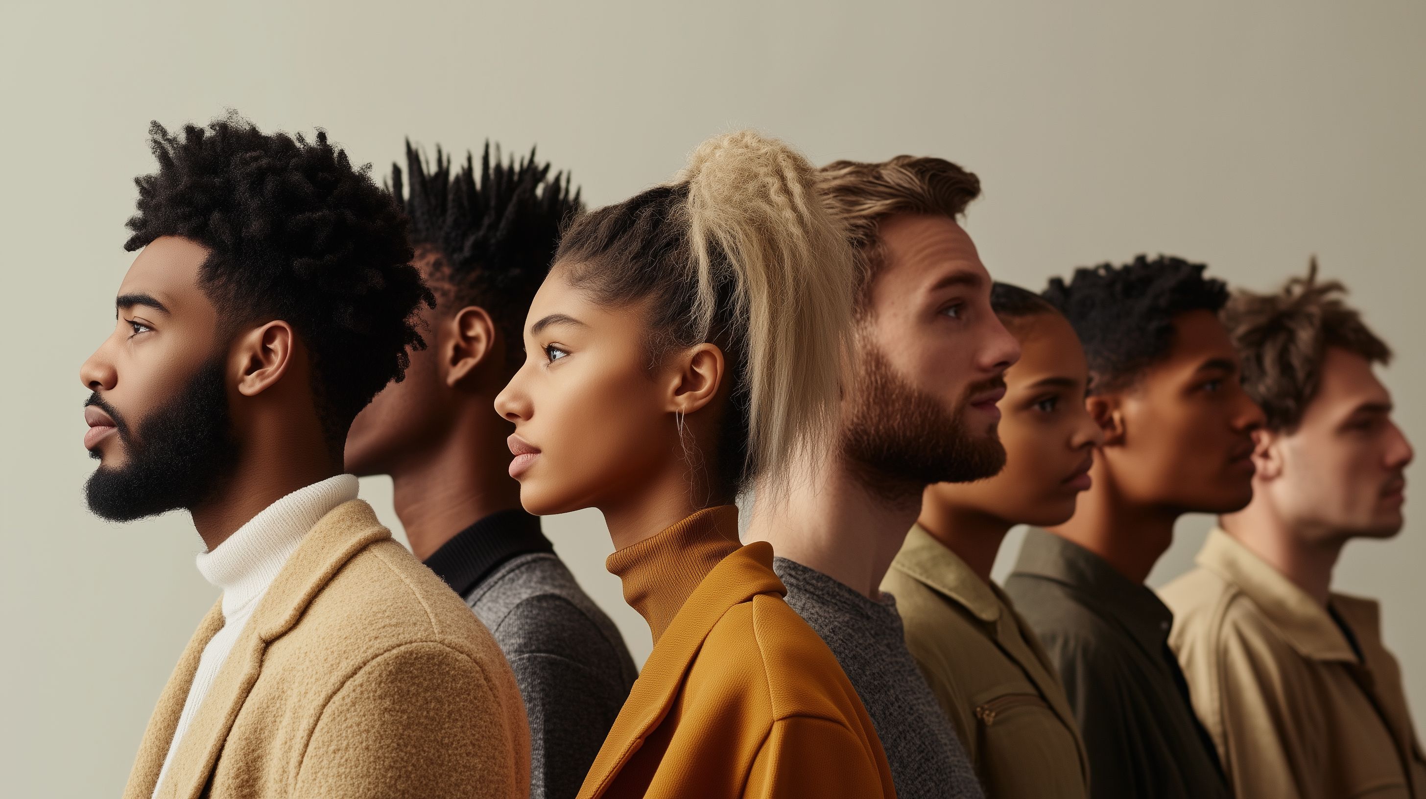 Dieses Foto zeigt eine Gruppe von Menschen verschiedener Herkunft und Erscheinung im Profil. Die Personen stehen nebeneinander und blicken konzentriert nach vorne. Ihre Gesichter sind im Halbprofil zu sehen, wodurch die Unterschiede in Frisuren, Hautfarbe und Kleidung gut hervorgehoben werden. Das Bild vermittelt einen Eindruck von Vielfalt, Zusammenhalt und Teamgeist. Es eignet sich hervorragend als kostenloses Stockfoto für Poster, Werbung und Verwendung in sozialen Medien, zum Beispiel für Kampagnen zu den Themen Inklusion, Diversity oder Gemeinschaft. Die hohe Auflösung und Creative-Commons-Lizenzierung machen das Bild flexibel einsetzbar.