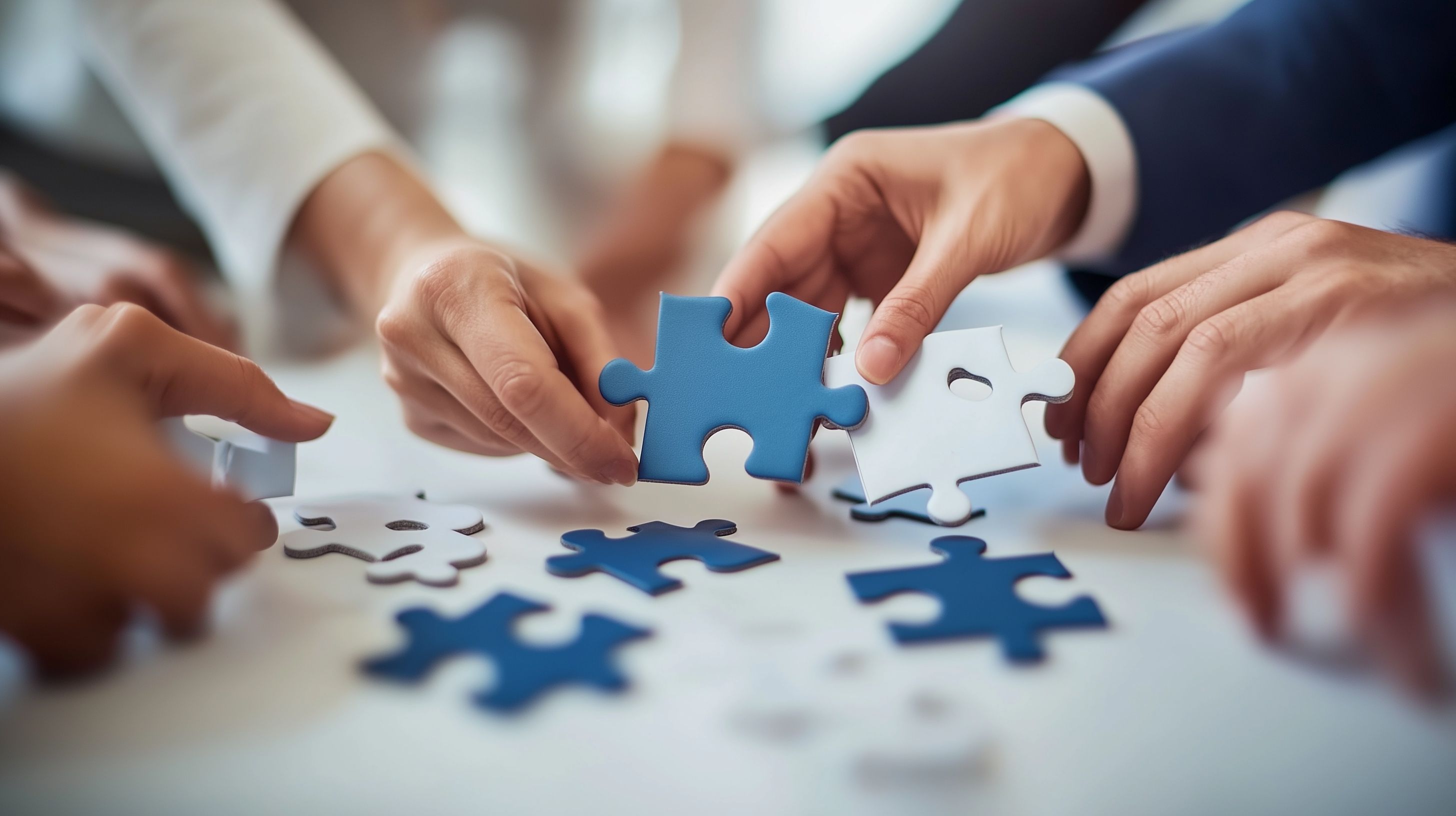 Das Bild zeigt Geschäftsleute, die gemeinsam an der Lösung eines Puzzles arbeiten. Sie sitzen an einem Tisch und fügen verschiedenfarbige Puzzleteile zusammen, um ein Ganzes zu schaffen. Die Hände der Personen sind im Fokus, was den Teamcharakter der Szene betont. Das Foto vermittelt ein Gefühl von Konzentration, Kooperation und dem Streben nach einem gemeinsamen Ziel. Es eignet sich hervorragend für den Einsatz in Blogbeiträgen, Newslettern oder Social-Media-Kampagnen zum Thema Teamwork, Strategie und Problemlösung in Unternehmen. Dieses hochwertige, kostenlose Stockfoto ist in hoher Auflösung und unter der Creative-Commons-Lizenz verfügbar.