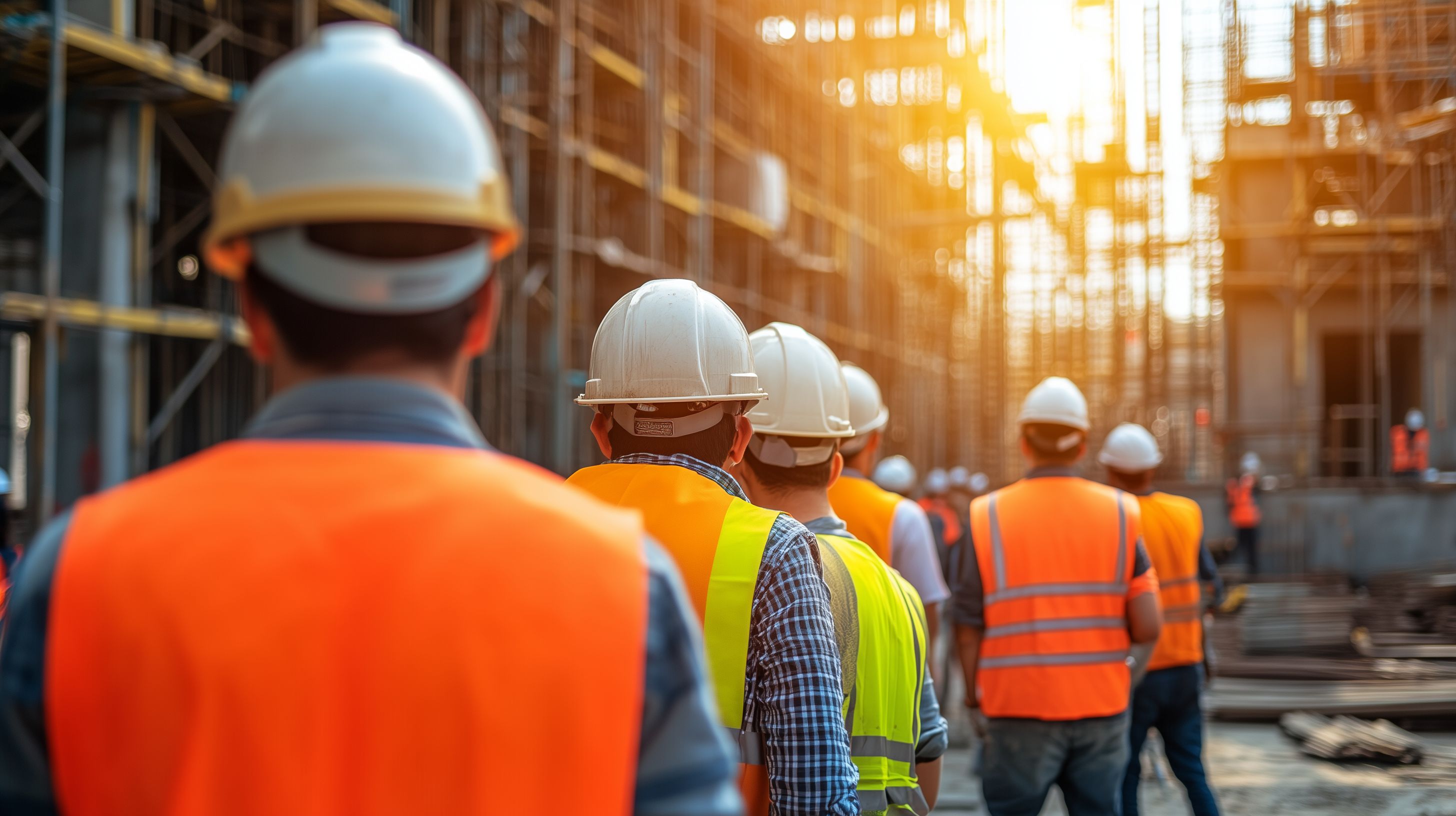Das Foto zeigt ein Team von Bauarbeitern auf einer modernen Baustelle. Sie tragen Schutzhelme und Warnwesten, was auf eine sichere und professionelle Arbeitsumgebung hinweist. Im Hintergrund ist eine Industriekulisse mit einem Gerüstsystem und einfallenden Sonnenstrahlen zu sehen, was eine dynamische und energiegeladene Atmosphäre vermittelt. Dieses kostenlose Stockfoto in hoher Auflösung unter Creative-Commons-Lizenz eignet sich ideal für Blogs, Newsletter, Social-Media-Beiträge und Werbematerialien, die das Thema Bauindustrie, Arbeitsschutz oder moderne Architektur behandeln.