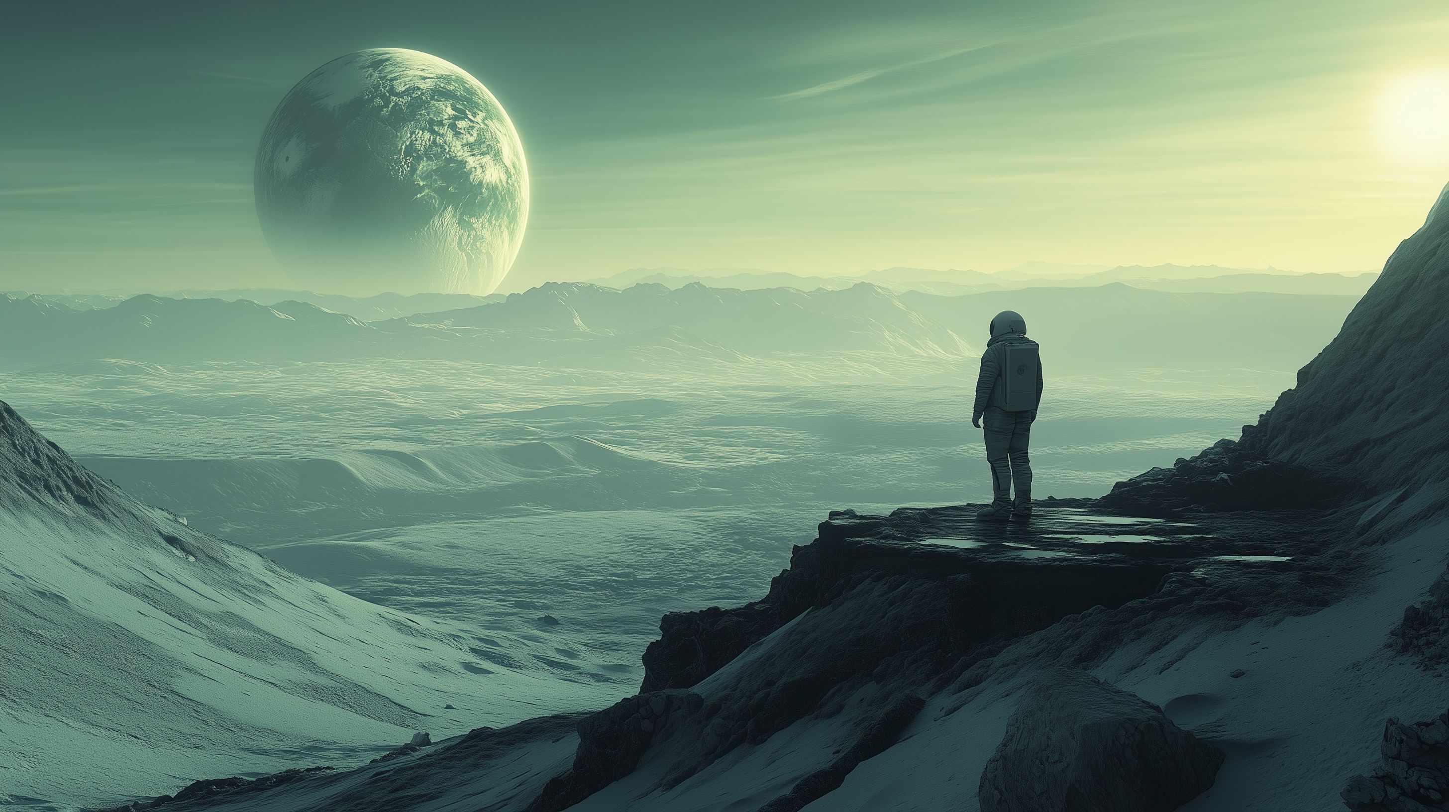 Das Foto zeigt einen Astronauten, der allein auf einer felsigen Mondlandschaft steht und auf die majestätisch am Horizont thronende Erde blickt. Die surreal anmutende Szenerie ist in einem stimmungsvollen Grünton gehalten und vermittelt eine Atmosphäre von Einsamkeit, Weite und Rätsel. Das Bild eignet sich perfekt als Hintergrundbild für Science-Fiction-Projekte, Blog-Artikel zu Raumfahrt und Zukunftsvisionen oder als beeindruckender Eyecatcher in Werbung und Social-Media-Posts. Dieses hochauflösende, kostenfreie Stockfoto unter Creative-Commons-Lizenz bietet eine einzigartige Optik für verschiedenste Anwendungen.