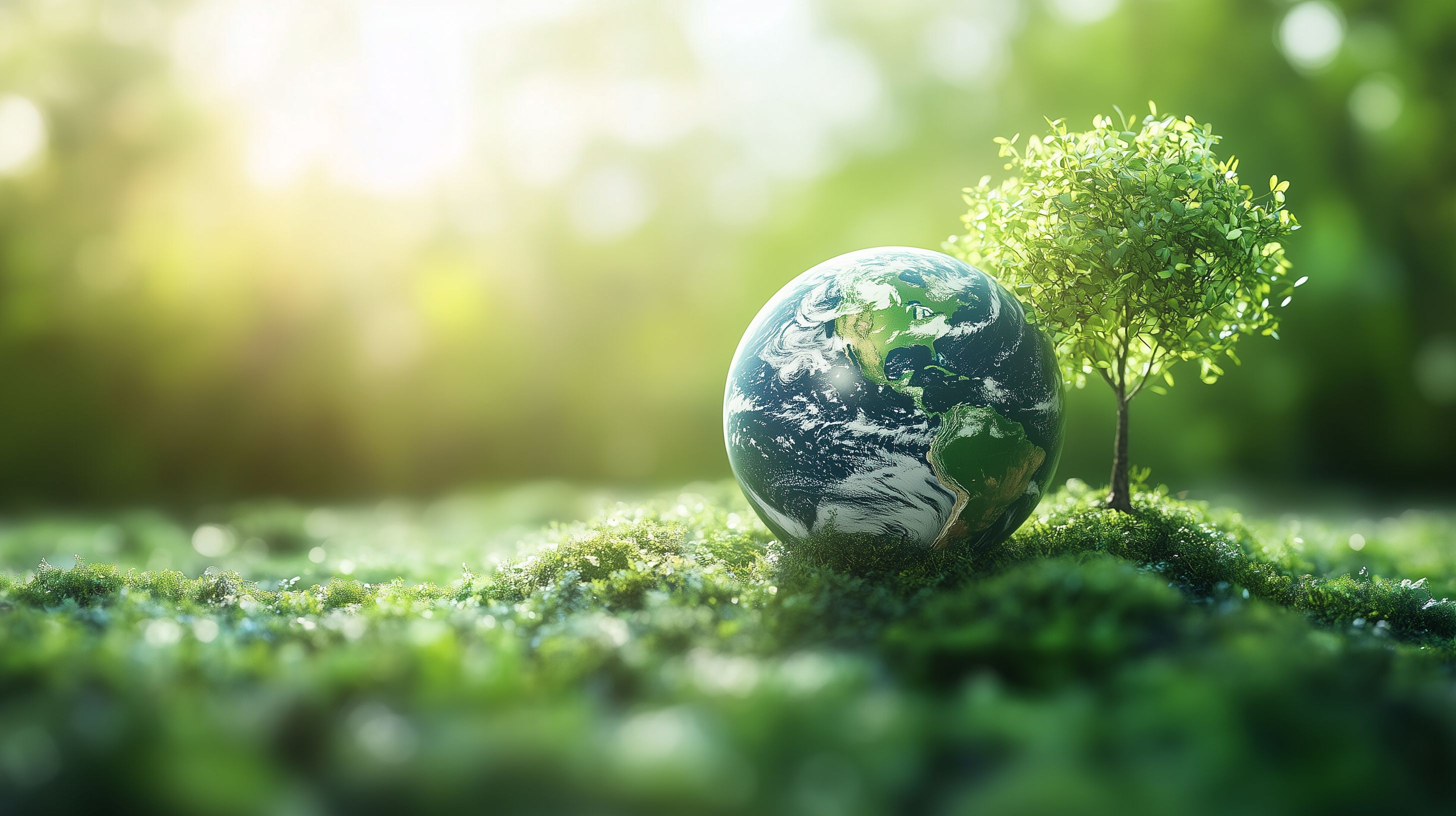 Das Bild zeigt unseren Planeten Erde, umgeben von üppiger grüner Vegetation und Moos. Ein junger Baum wächst aus dem Globus heraus, ein Symbol für die Verbindung zwischen Mensch und Natur sowie für eine nachhaltige Zukunft unserer Erde. Die warmen, sonnigen Lichtstrahlen verleihen der Szene einen optimistischen und friedvollen Charakter. Dieses Stockfoto eignet sich hervorragend als visuelle Untermalung für Nachhaltigkeitsprojekte, Umweltschutz-Kampagnen oder Artikel über ökologische Themen. Mit seiner hohen Auflösung und kostenlosen Creative-Commons-Lizenz kann es frei für verschiedenste Zwecke genutzt werden.