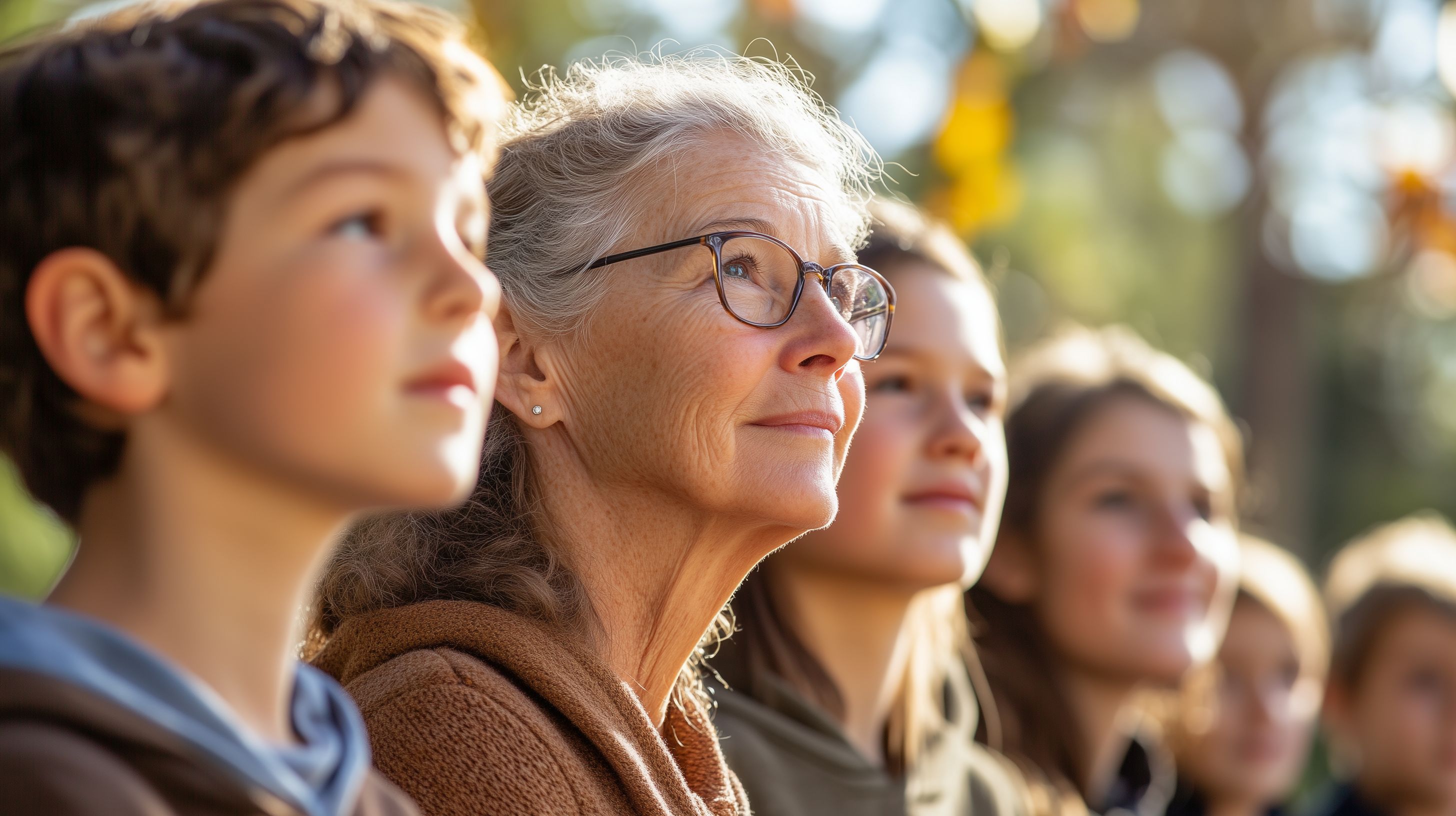 Dieses Foto zeigt ein generationsübergreifendes Porträt, bei dem die ältere Frau in der Mitte der Aufmerksamkeit steht. Sie lächelt freundlich und scheint eine ruhige, entspannte Ausstrahlung zu haben. Um sie herum sind mehrere jüngere Personen, vermutlich ihre Familie, die ebenfalls friedlich und zufrieden wirken. Die natürliche Umgebung mit dem grünen Hintergrund verleiht dem Bild eine beruhigende Atmosphäre. Dieses hochauflösende Stockfoto eignet sich hervorragend für die Verwendung in Blogs, Newslettern, sozialen Medien oder Werbematerialien, bei denen es um Familienthemen, Mehrgenerationenbeziehungen oder allgemein eine ruhige, harmonische Stimmung vermittelt werden soll. Das Foto ist unter einer Creative-Commons-Lizenz verfügbar und kann somit kostenfrei genutzt werden.