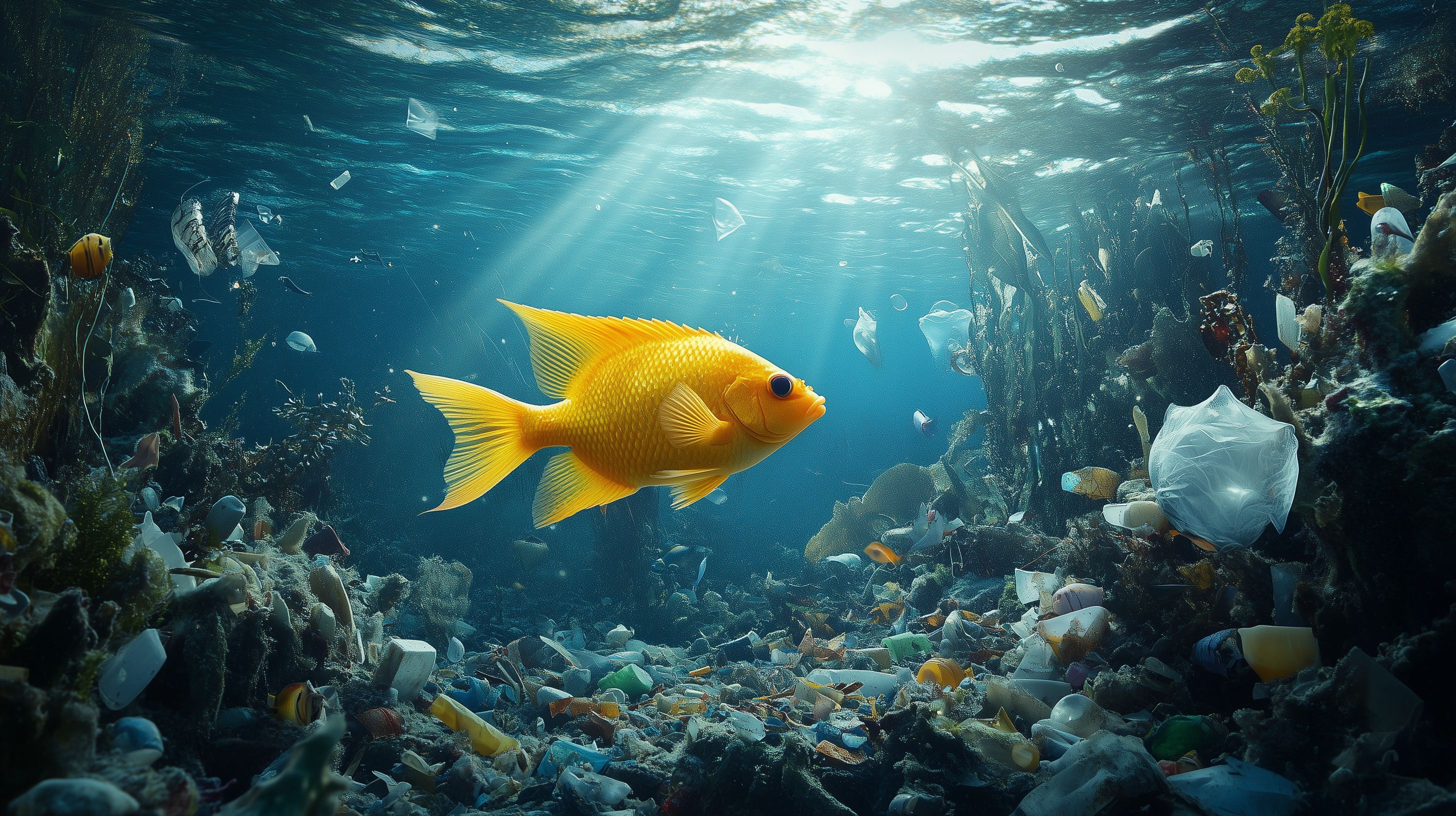 Das Bild zeigt einen leuchtend gelben Goldfisch, der majestätisch durch ein buntes Korallenriff im Ozean schwimmt. Das Unterwasserlicht fällt auf die Fische und Korallen, was eine wunderschöne, farbenfrohe Szene erzeugt. Der Goldfisch sticht besonders hervor und scheint fast zu strahlen. Diese entspannende und friedliche Unterwasserlandschaft wäre ideal für Blog-Beiträge, Newsletter-Designs oder Social-Media-Posts zum Thema Natur, Umwelt oder Reisen. Als kostenloses Stockfoto in hoher Auflösung und unter Creative-Commons-Lizenz ist dieses Bild perfekt für eine Vielzahl an Verwendungen geeignet.