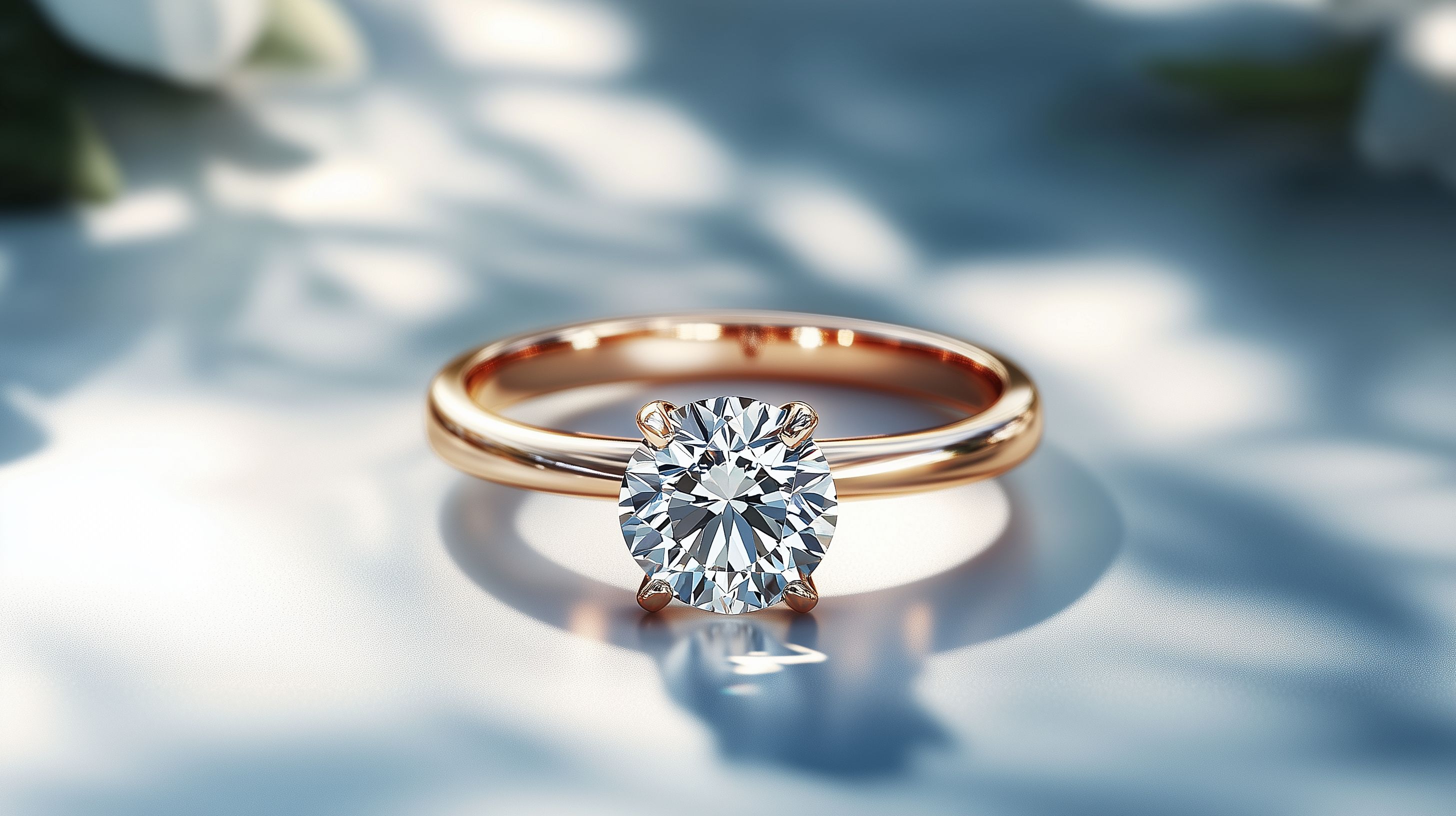 Dieses Foto zeigt einen eleganten Verlobungsring mit einem funkelnden Diamant-Solitär in einer klassischen Fassung. Der Ring ist aus rosévergoldetem Metall gefertigt und setzt den Edelstein perfekt in Szene. Vor einem weißen Hintergrund inszeniert, strahlt der Ring Luxus und Hochwertig-keit aus. Dieses Stockfoto eignet sich hervorragend für Verwendungen in Blogbeiträgen, Newsletter-Layouts oder Social-Media-Posts rund um das Thema Liebe, Heiratsanträge und Hochzeit. Die hochauflösende Datei ist kostenlos unter einer Creative-Commons-Lizenz verfügbar.