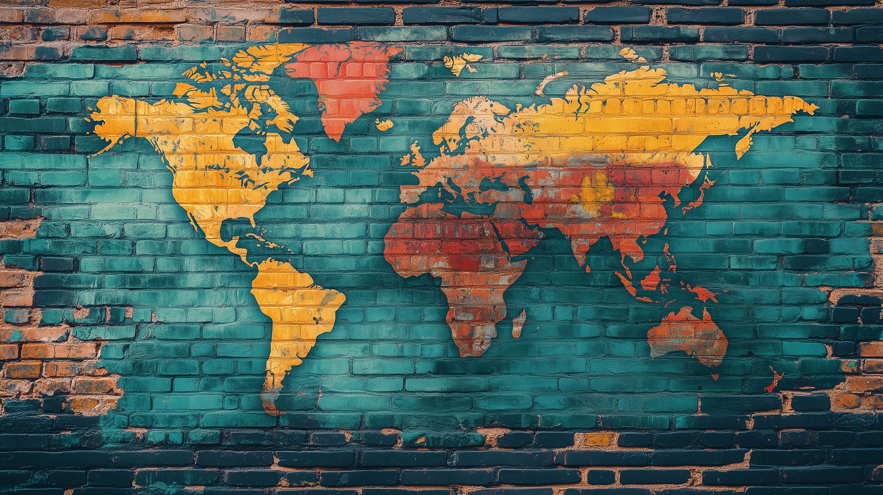 Dieses farbenprächtige Foto zeigt eine Weltkarte, die auf eine alte, verwitterte Ziegelmauer gemalt wurde. Die Kontinente sind in warmen Rottönen gehalten, durchsetzt mit gelben und blauen Akzenten. Die Darstellung hat einen vintage-inspirierten, rustikalen Look, der eine nostalgische Atmosphäre vermittelt. Dieses hochauflösende Foto eignet sich perfekt als Hintergrundbild für Blogs, Newsletter, Social-Media-Beiträge oder Werbematerial zum Thema Reisen, Tourismus oder Geographie. Das Stockfoto steht unter der Creative-Commons-Lizenz zur freien Nutzung zur Verfügung.