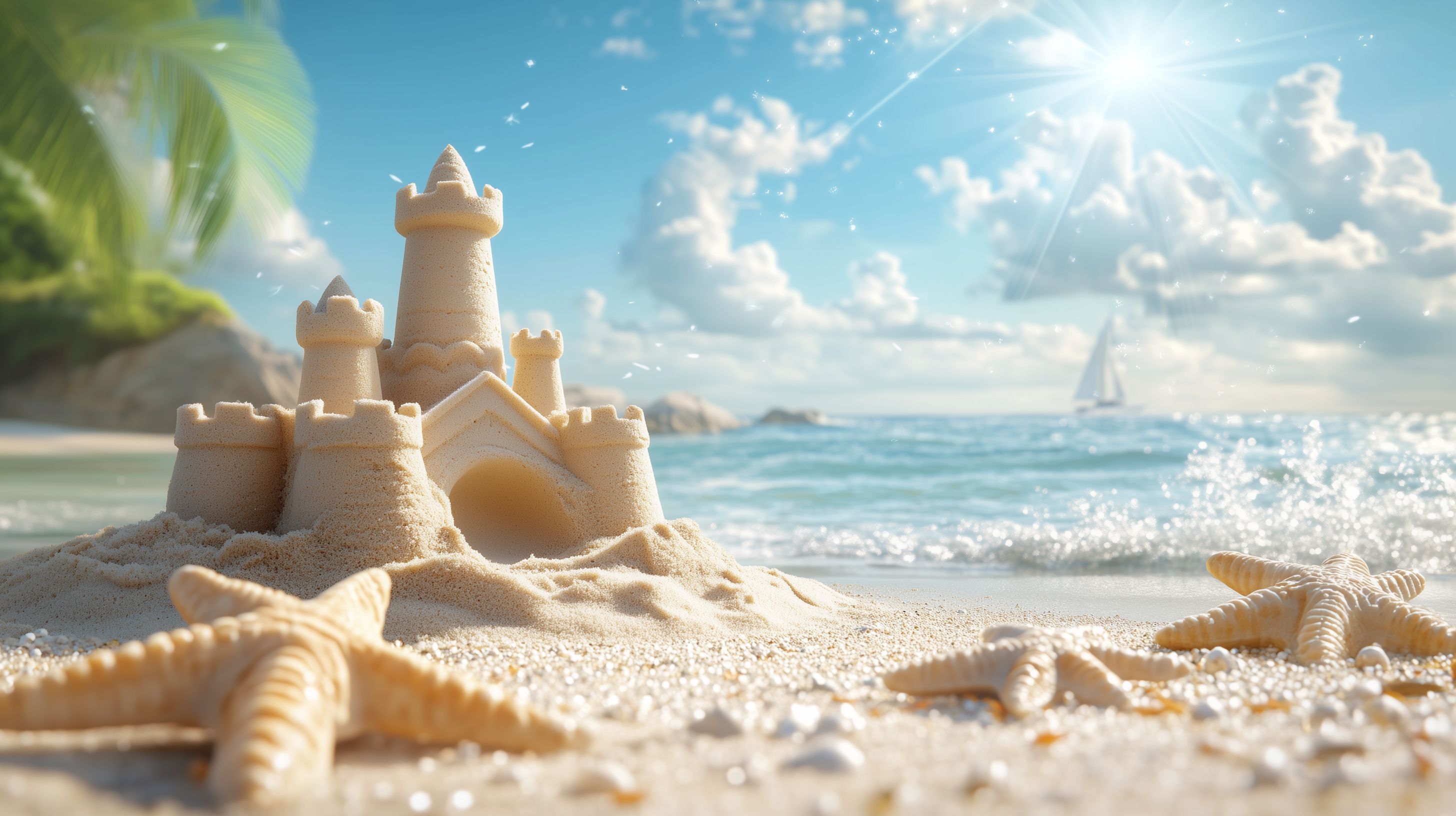 Dieses beeindruckende Foto zeigt eine detailliert gestaltete Sandburg am Strand, umgeben von feinstem Sand und dem kristallklaren Meer. Im Hintergrund ist ein Segelboot auf den Wellen zu sehen, während am Himmel eine sonnige Wolkenformation dominiert. Die Szene strahlt eine friedliche, entspannte Atmosphäre aus und lädt den Betrachter dazu ein, in Gedanken in eine wohlverdiente Auszeit am Strand einzutauchen. Als kostenloses Stockfoto in hoher Auflösung unter einer Creative-Commons-Lizenz eignet sich dieses Bild hervorragend für den Einsatz in Blogs, Newslettern, Social-Media-Beiträgen oder Werbekampagnen, die Urlaubsstimmung, Erholung und Naturgenuss vermitteln möchten.