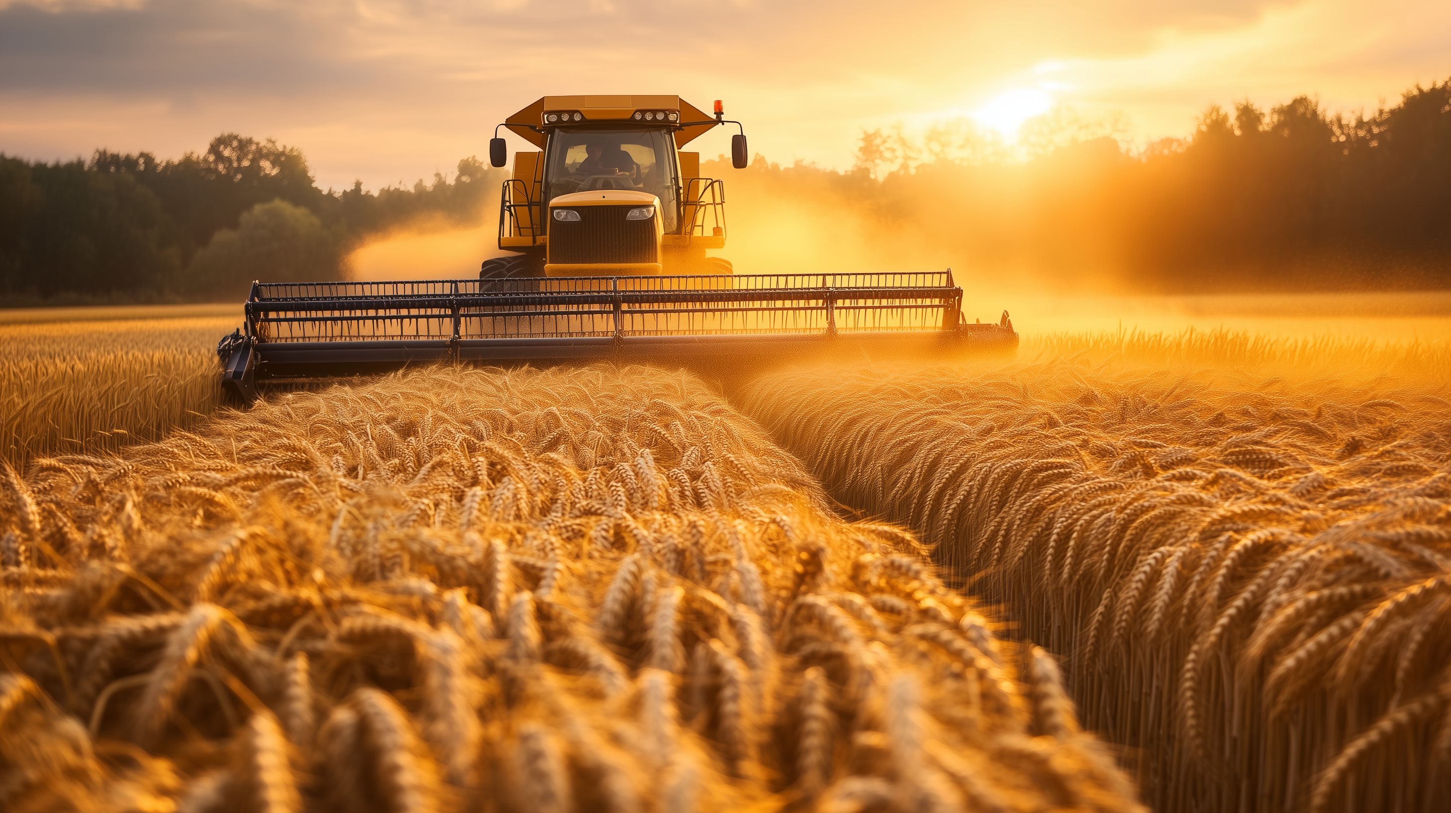 Das Bild zeigt ein goldenes Weizenfeld, das von einem Mähdrescher durchquert wird, während die Sonne am Horizont untergeht. Die warmen Farbtöne und der weite Blick über das Feld schaffen eine malerische, ländliche Atmosphäre. Dieses kostenlose Stockfoto in hoher Auflösung unter Creative-Commons-Lizenz eignet sich hervorragend für den Einsatz in Blogs, Newslettern, Social-Media-Beiträgen oder Werbematerialien rund um die Themen Landwirtschaft, Ernte, Natur und Idylle.