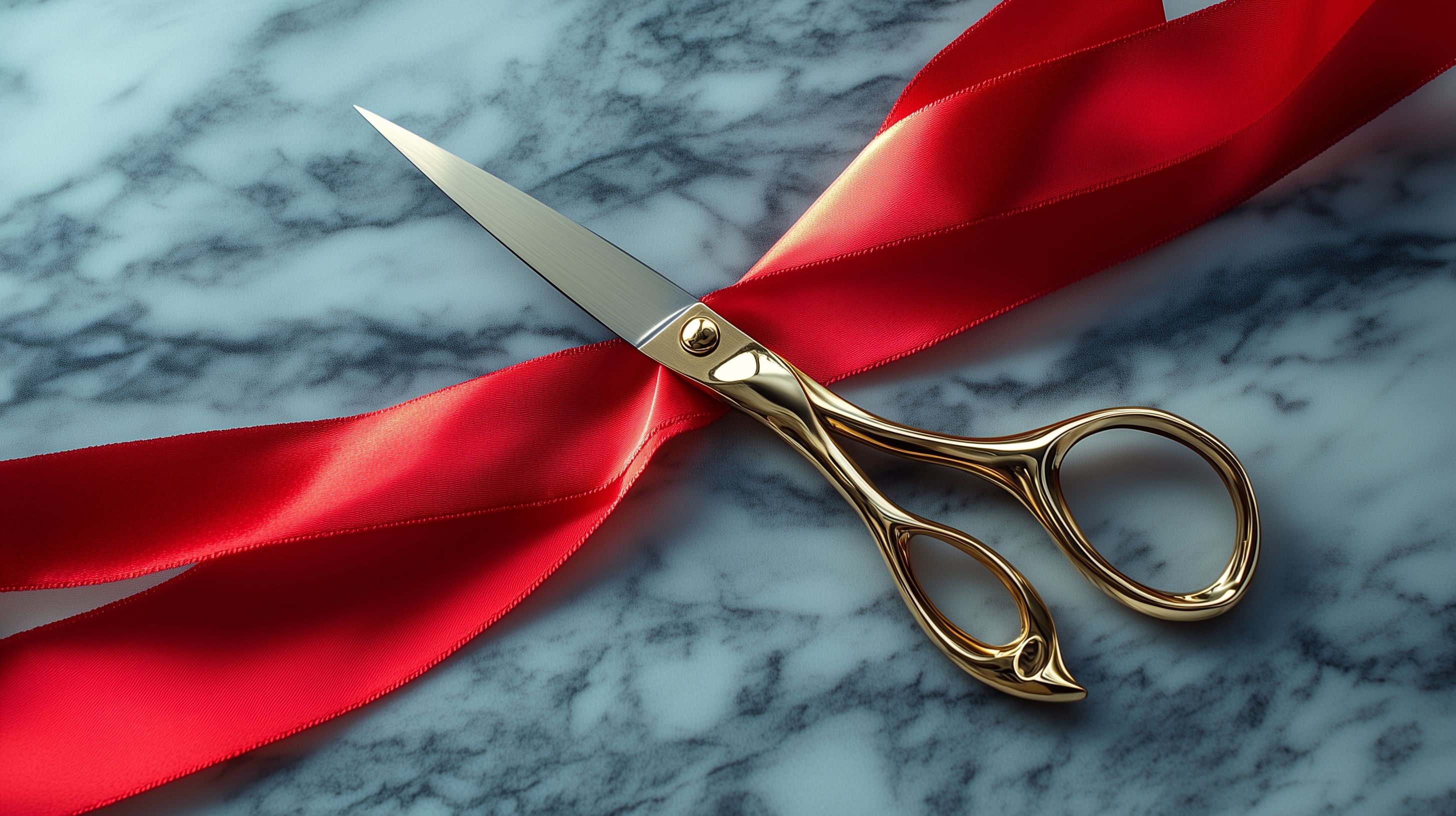 Dieses Foto zeigt eine goldene Schere, die ein rotes Band zerschneidet, vor einem Hintergrund aus hellem Marmor. Die Szene suggeriert eine feierliche Eröffnung oder Zeremonie, bei der die Schere symbolisch eingesetzt wird, um einen neuen Abschnitt oder eine Promotion offiziell zu starten. Das luxuriöse, elegante Motiv ist ideal für Anwendungen wie Werbung, Blogbeiträge, Newsletter-Designs oder Präsentationen, bei denen eine hochwertige, professionelle Optik gefragt ist. Als kostenloses Stockfoto in hoher Auflösung und unter einer Creative-Commons-Lizenz ist dieses Bild eine wertvolle visuelle Ressource für kreative Projekte.