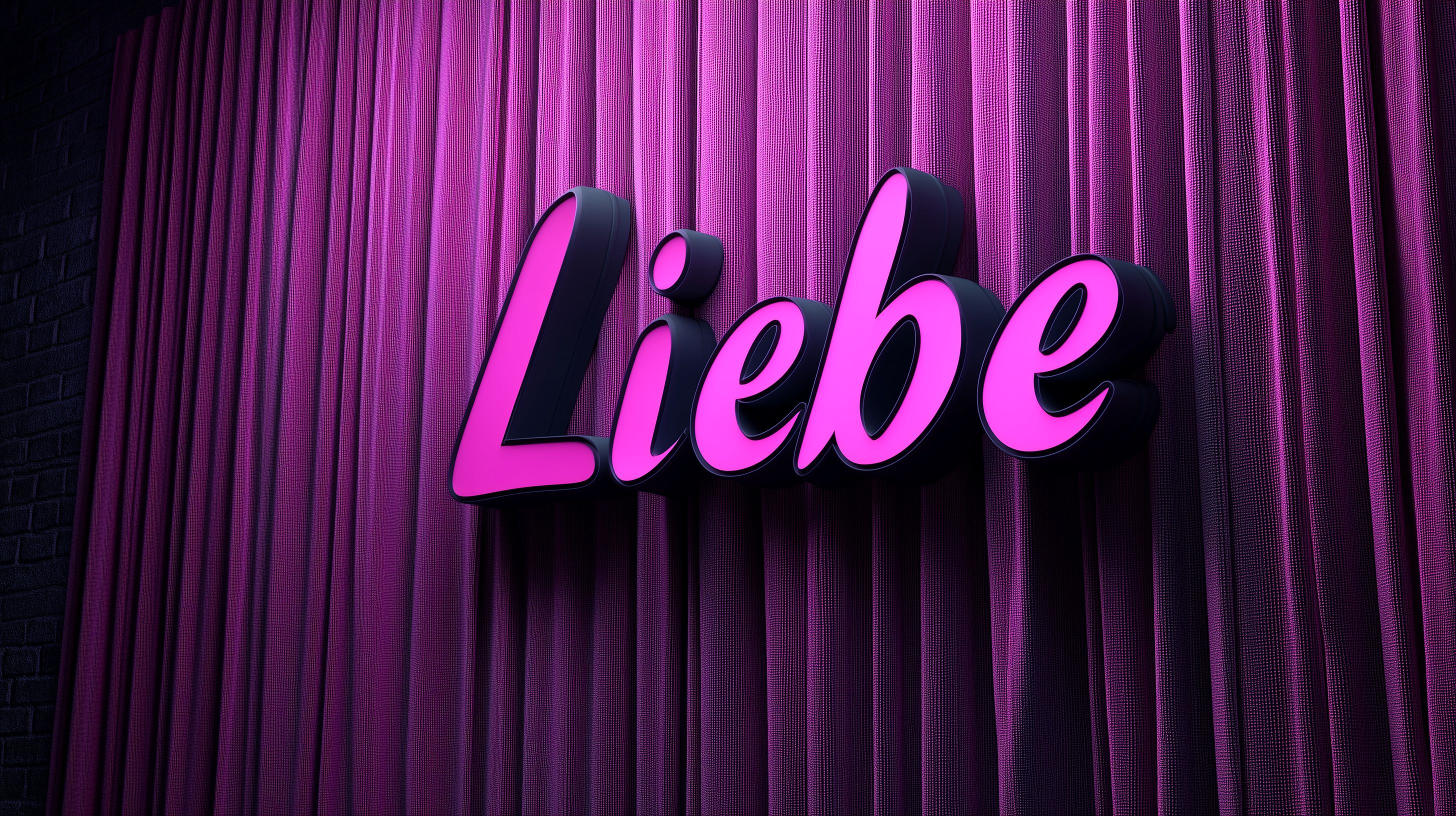 Das Bild zeigt einen leuchtenden Schriftzug 'Liebe' in kräftigem Pink vor einem lila Bühnenhintergrund. Die Szene ist bühnenartig mit einem voluminösen, fallenden Vorhang inszeniert, was eine festliche und emotionale Atmosphäre erzeugt. Die intensive Farbgebung und der dramatische Auftritt machen dieses Motiv ideal für den Einsatz in Werbung, Social-Media-Posts oder als Hintergrundbild für Blog- und Newsletter-Layouts, insbesondere rund um Themen wie Liebe, Beziehungen oder Valentinstag. Als kostenloses Stockfoto in hoher Auflösung und unter Creative-Commons-Lizenz lässt es sich vielseitig und flexibel einsetzen.