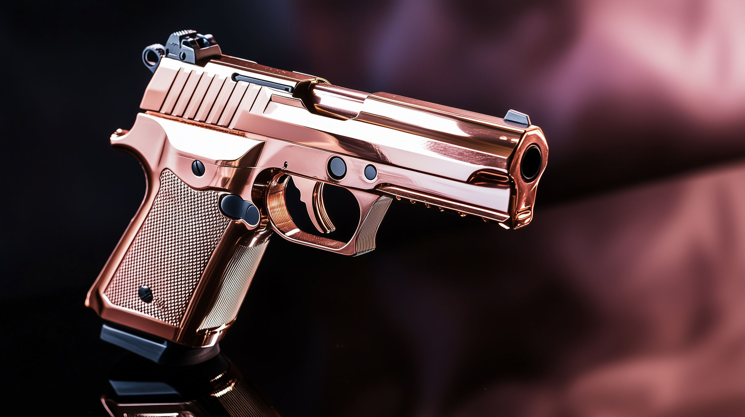 Diese detaillierte Aufnahme zeigt eine hochglänzende goldene Pistole auf einem dunklen Hintergrund. Der Kontrast zwischen dem glänzenden Metall und der düsteren Umgebung erzeugt eine beeindruckende Ästhetik. Die Pistole ist präzise in Szene gesetzt, mit Fokus auf die geschwungenen Formen und das elegante Design. Dieses Stockfoto eignet sich hervorragend für den Einsatz in Artikeln, Werbematerialien oder Präsentationen zu Themen wie Sicherheit, Militär oder Luxusgüter. Verfügbar in hoher Auflösung unter einer Creative-Commons-Lizenz.