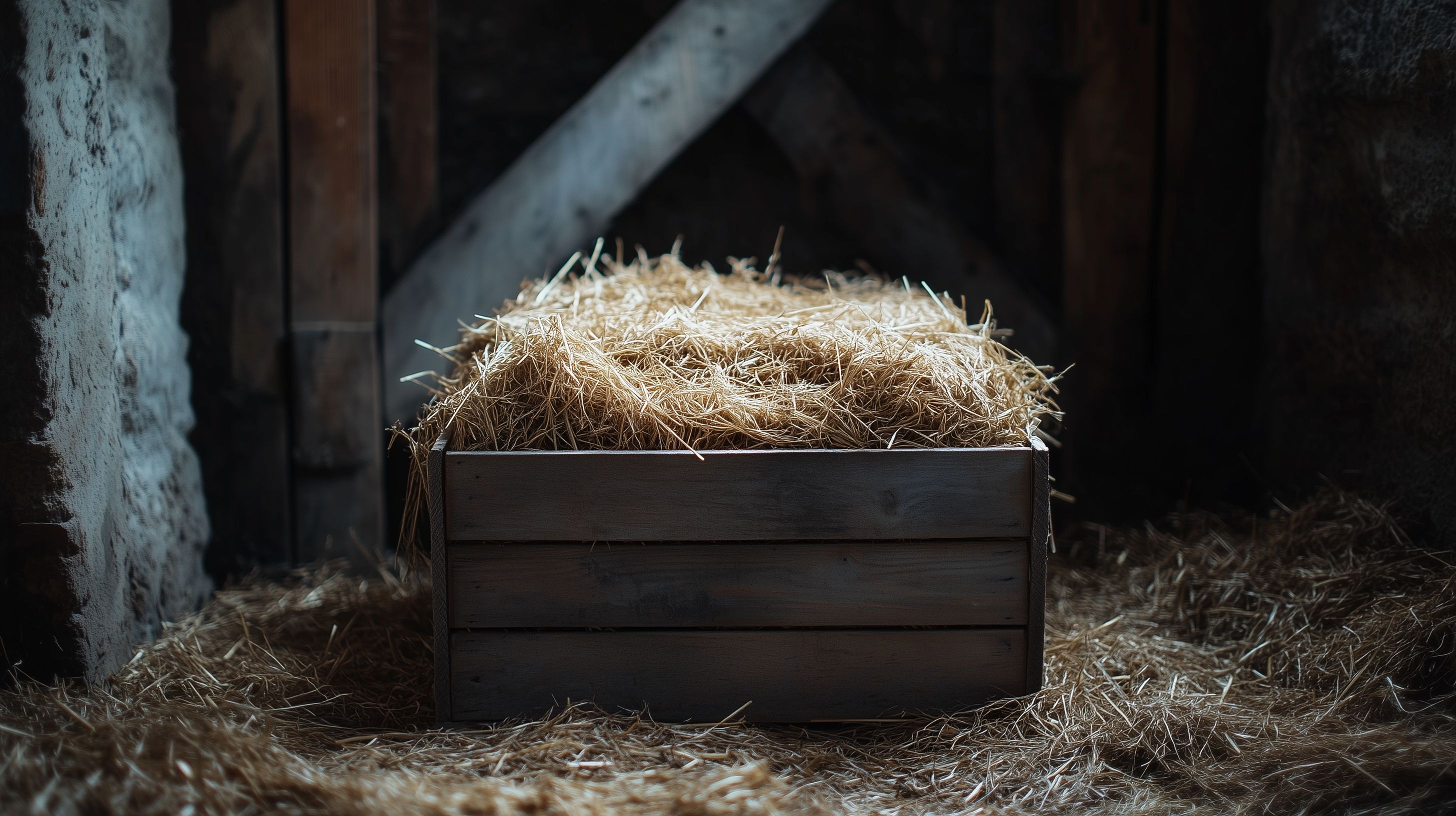 Dieses Stockfoto zeigt eine rustikale Heukiste in einem dunklen Raum, vermutlich einer Scheune. Die Kiste ist aus dunklem Holz gefertigt und mit locker aufgeschichtetem Heu gefüllt. Die Umgebung ist düster und erinnert an eine traditionelle ländliche Umgebung. Das Foto vermittelt eine authentische, natürliche Atmosphäre und wäre ideal für Blogbeiträge, Newsletter oder Social-Media-Beiträge mit Bezug zur Landwirtschaft, Ernte oder rustikalem Landleben. Das hochauflösende Bild steht kostenlos unter einer Creative-Commons-Lizenz zur Verfügung.